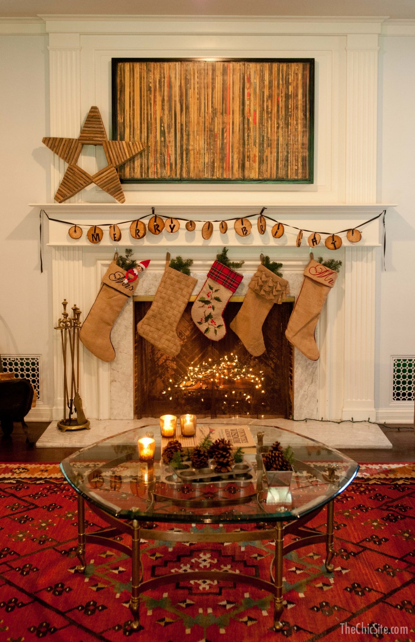 We had to cut off a few of the bottom branches of our tree when we brought it home so I used those to pull little sprigs for the stockings… it just added some nice texture and color to all that burlap.