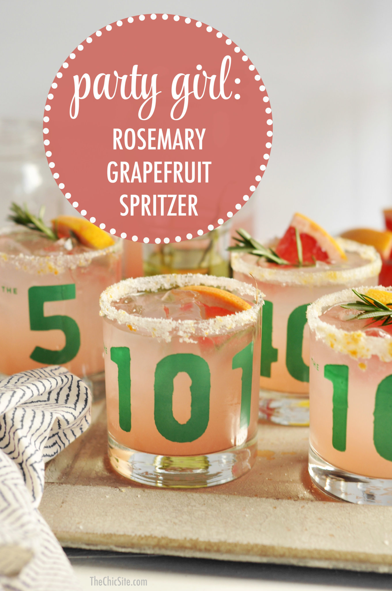 All of this to say that when I discovered District West (imagine Etsy but for LA-Based designers and makers) I was instantly obsessed! When District West asked me if I could find a way to incorporate something from their site into ours I jumped at the chance. After combing through their website (where I could get lost for hours) I stumbled upon these glasses celebrating all the major LA freeways I knew what I would make! So check it out, in honor of Party Girl and all the cocktails in the book it’s a Rosemary Grapefruit Spritzer! This cocktail is incredible… light and refreshing and exactly what you should serve at your next party!