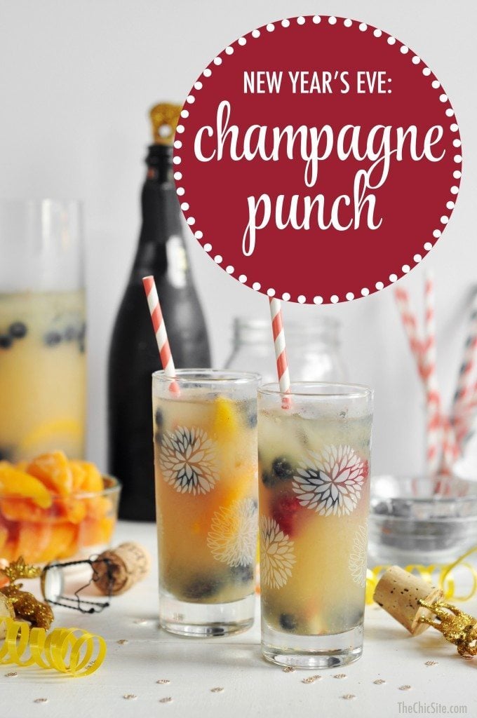 Weather you’re planning a last minute New Year’s Eve party, or simply forgot about including a cocktail at your gathering, The Chic has got your covered with this New Year’s Eve Champagne Punch. Just throw the ingredients together in a large bowl or pitcher and allow guests to serve themselves. It’s the easiest champagne cocktail you’ll ever make!