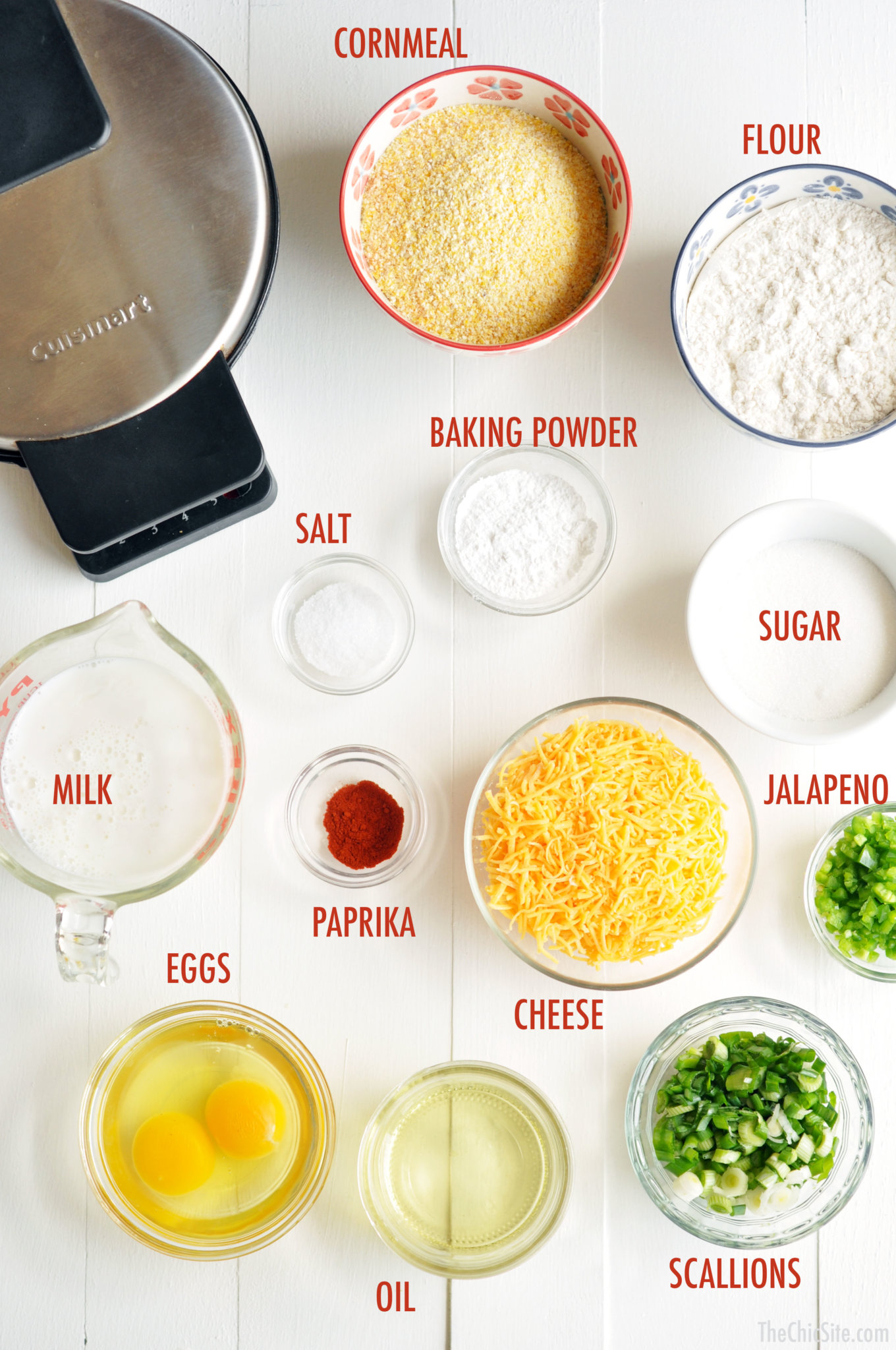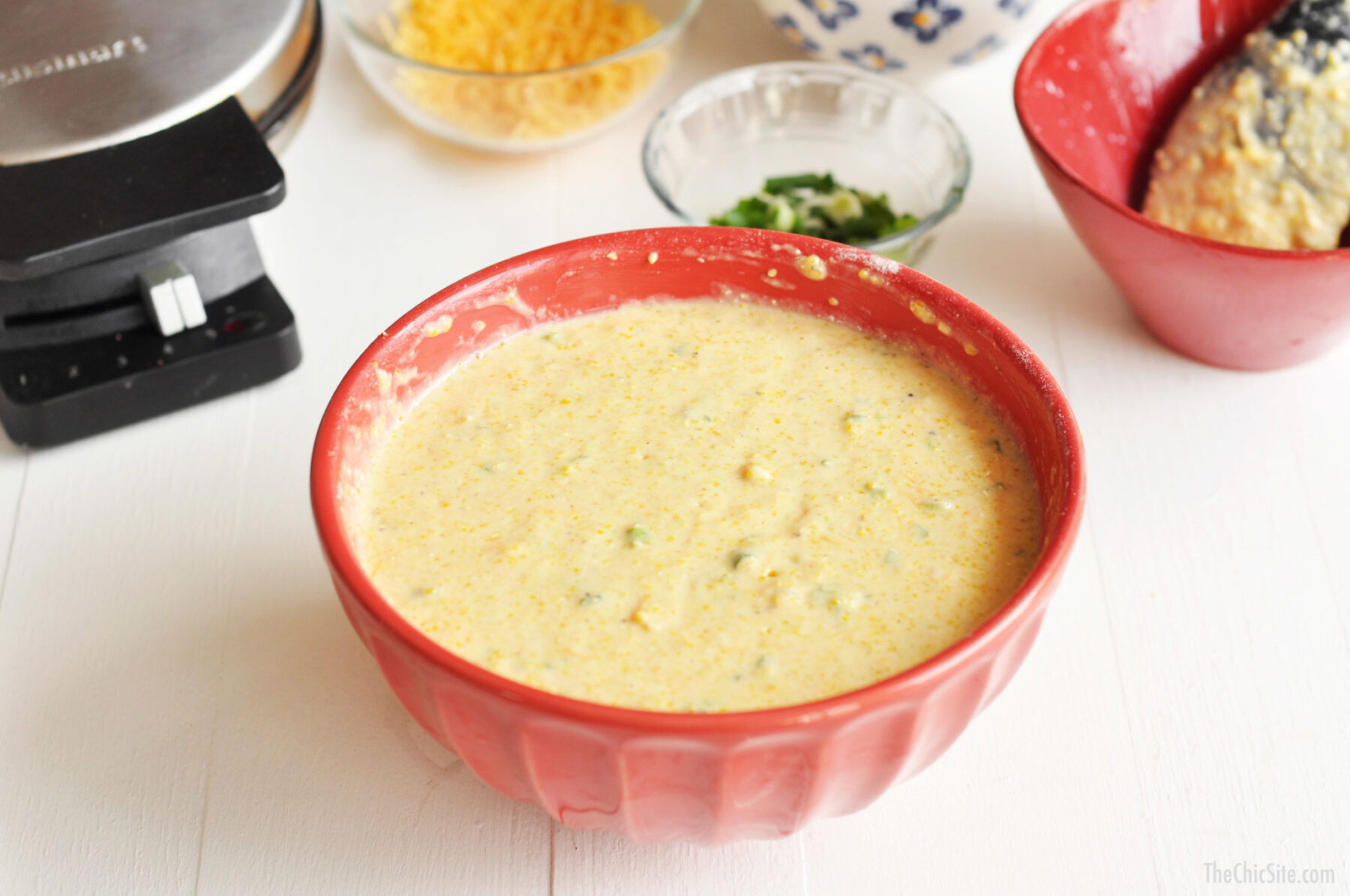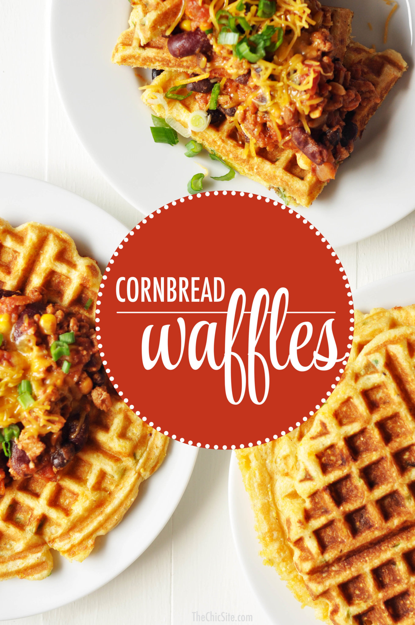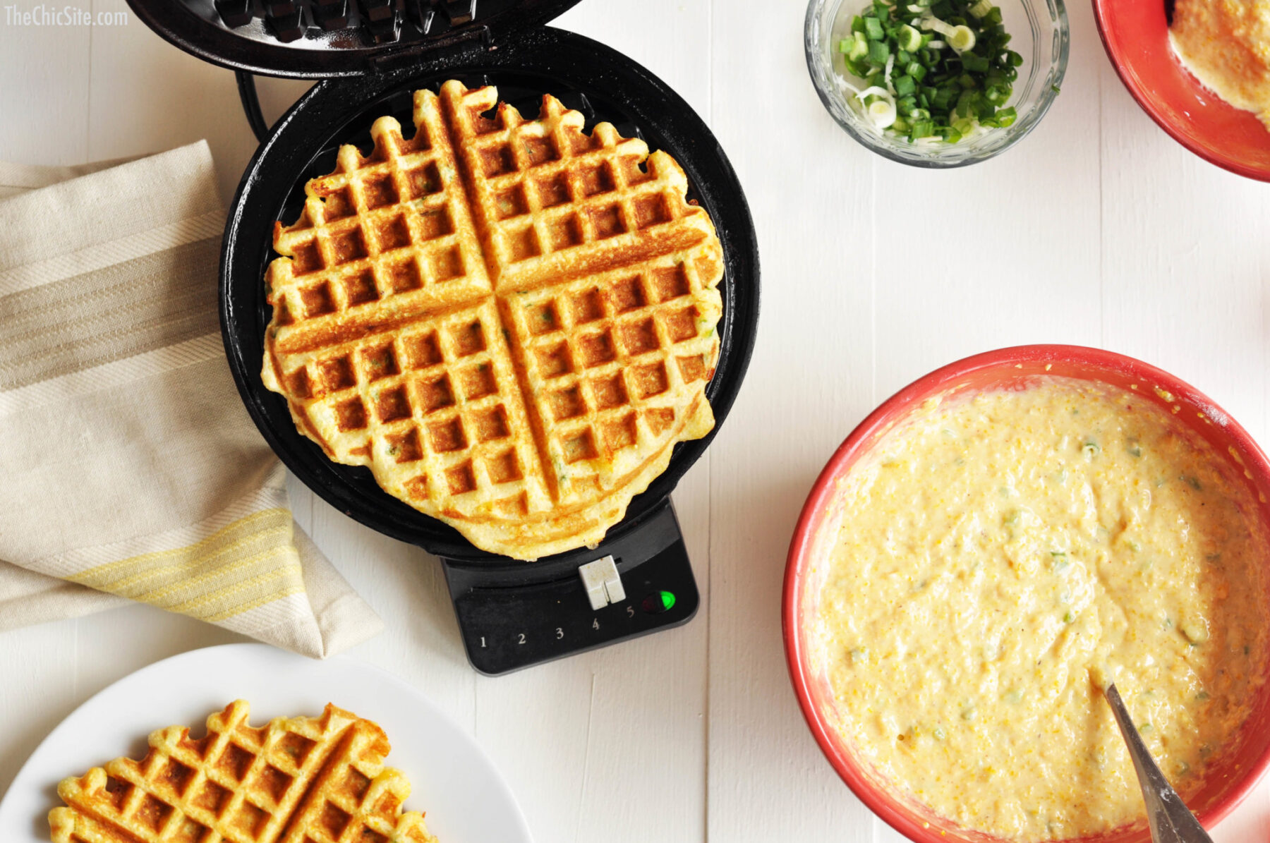 We’ve combined two of our favorite dishes into one! Here at Chic, we love a good slice of cornbread and we also happen to really love waffles! We could never decide which one we love better so we’ve combined them into one delicious dish. These Cornbread waffles are filled with cheddar, jalapeño and scallions. They happen to pair perfectly with our Slow-Cooker Turkey Chili!