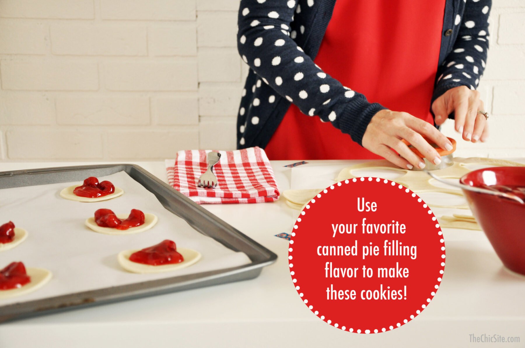 Seriously? How adorable are these cherry pie cookies?? They’re so cute I can’t even handle it! And do you want to know the best part about them? I used store bought pie dough and a jar of pie filling so the only “difficult” part was trying not to drool while I assembled them. Watch my video below for the tutorial and then scroll down for the steps! xo, Rachel