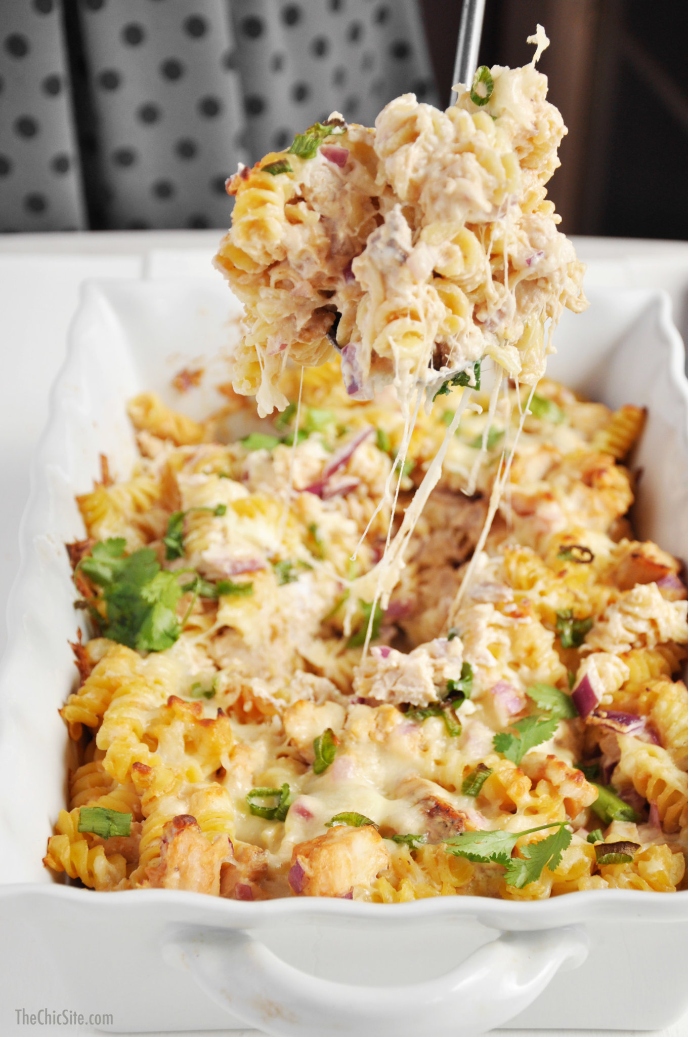 - Combine the pasta with the ricotta, BBQ sauce, red onion, salt, pepper, and half of the mozzarella. Transfer to a 9×13 inch baking dish and top with the remaining cheese and bake for about 20 to 25 minutes or until bubbly and golden brown. Top with scallions and serve immediately.