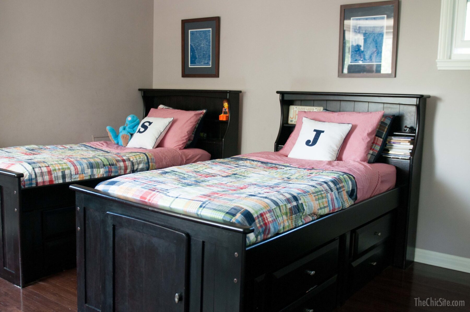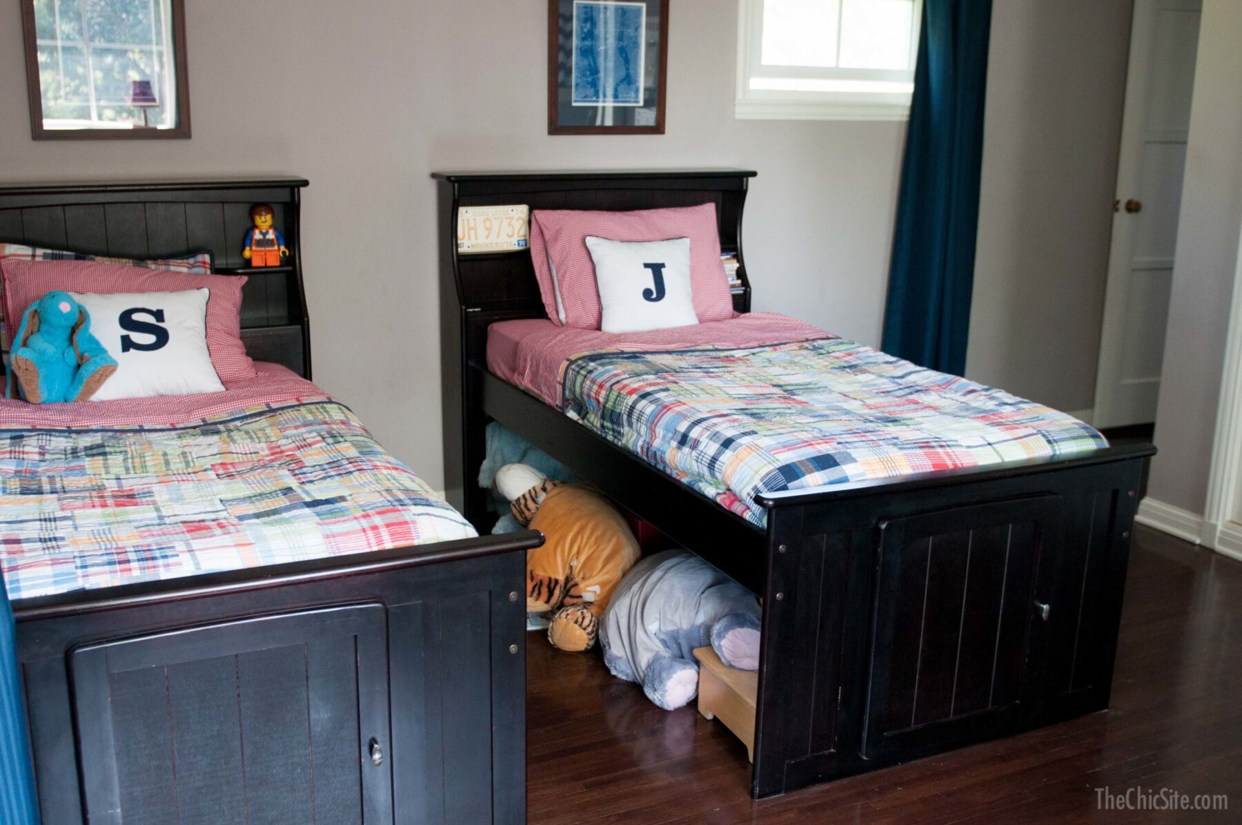 I’ll be totally honest with you. Sawyer Hollis age six, is obsessed with stuffed animals. He’s been that way for as long as I’ve known him and even though they’re not the prettiest accessory I stopped trying to fight him on covering his bed with them at night. Now, after we make his bed in the morning we just shove them all under Jackson’s bed so they’re easy to access when he wants them but you can’t see them when you look in the room.