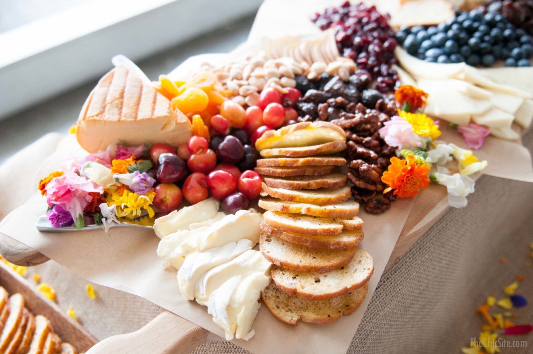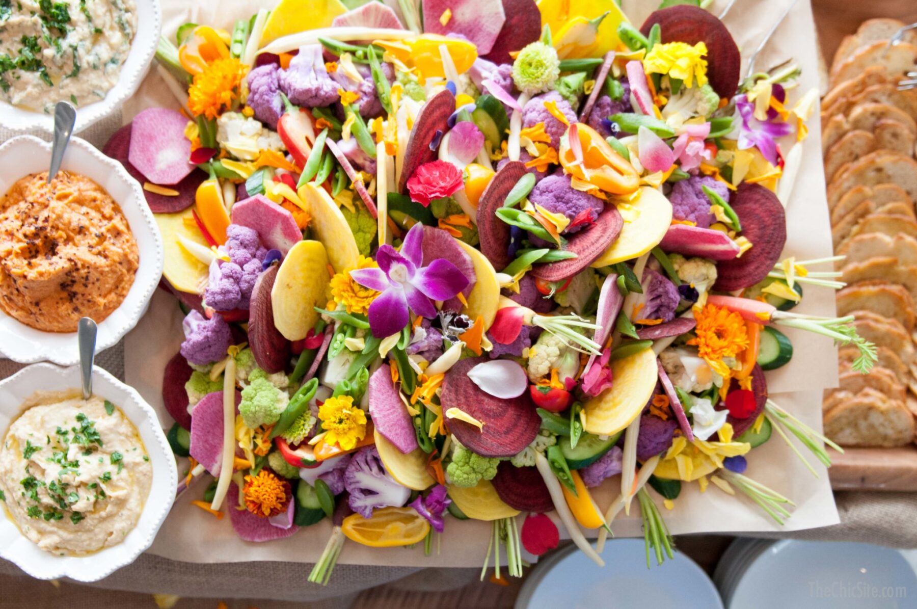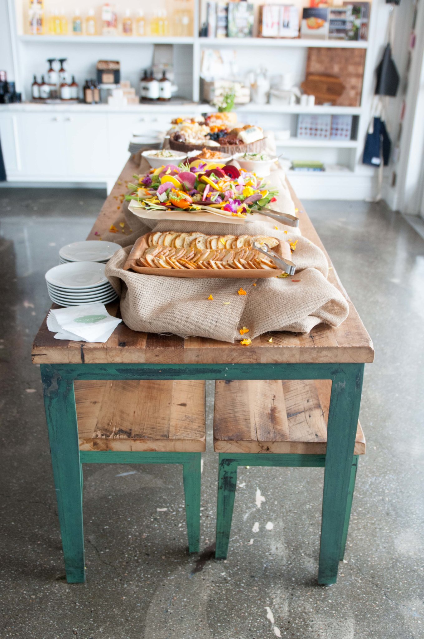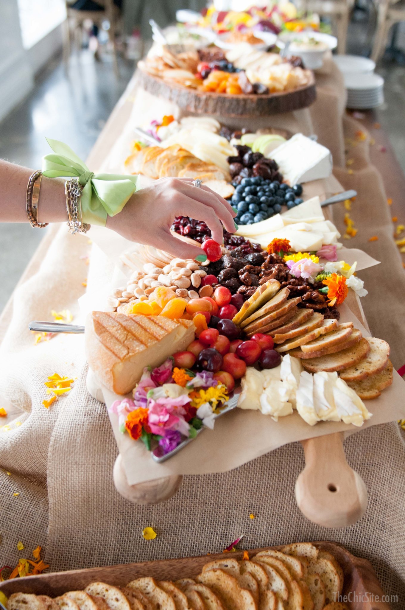 The buffet was so gorgeous it was like party decor all on it’s own. We served cheese, veggies, hummus, crackers, etc… anything people could easy nosh on while chatting with friends or sipping champagne.