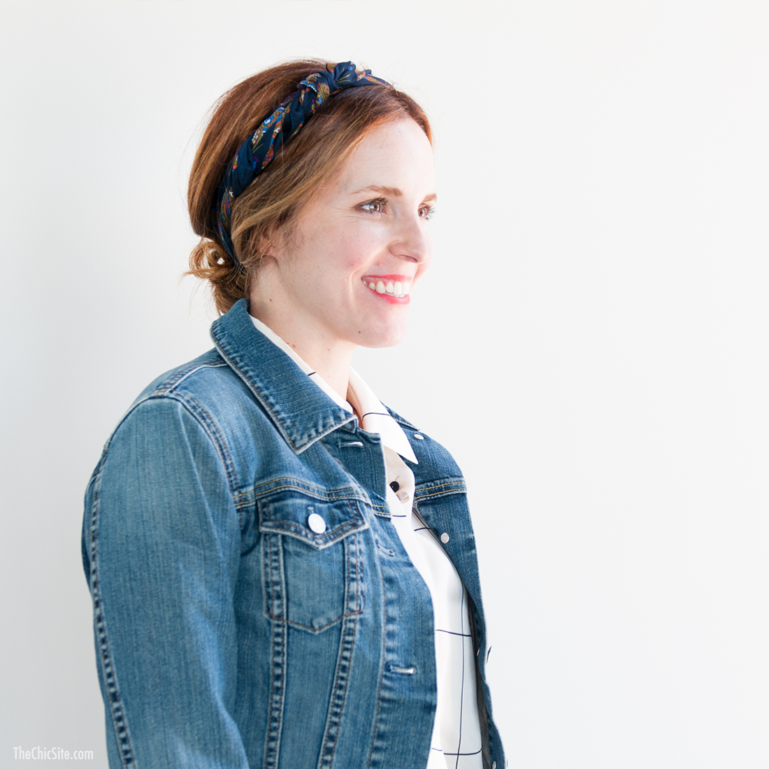 This is classic right? I like to call it the flight attendant because it reminds me of the old school stewardess uniforms from the fifties. Just pair your favorite vintage scarf with a blouse that has the same colors in it. Tie it around your throat in place of a statement necklace.