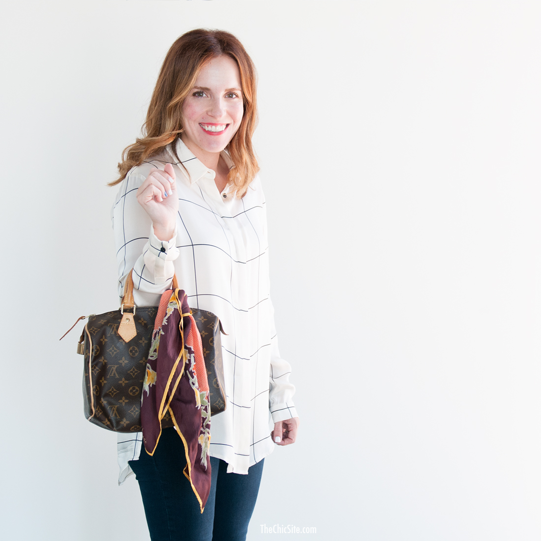 This is my absolute favorite way to rock vintage scarf style! Years ago when I was a little baby twenty something year old assistant I saw a fabulous looking woman walking down the street with a Louis Vuitton speedy bag with a vintage scarf on it’s handle. I remember thinking, Someday, I’m going to be as fabulous as that woman! When I made my first big paycheck after starting my event planning firm, this bag was the thing I bought myself to celebrate. Twelve years later and I still carry it around and change out the vintage scarf on it’s handle seasonally.