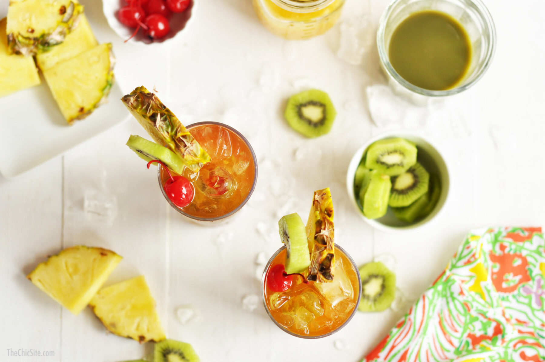 If you happened to read my post on our Hawaiian vacation earlier this year then you might have noticed I had this cocktail in my hand for most of it. I love the colors and the flavors in this drink and because it’s something I usually sip when I’m somewhere tropical, making one at home makes me feel like I’m on a little vacation. You can make the original recipe but why not add some extra oomph and make a Kiwi Mai Tai instead? The pineapple is sweet, the kiwi is tart and the rum is going to make everything better!