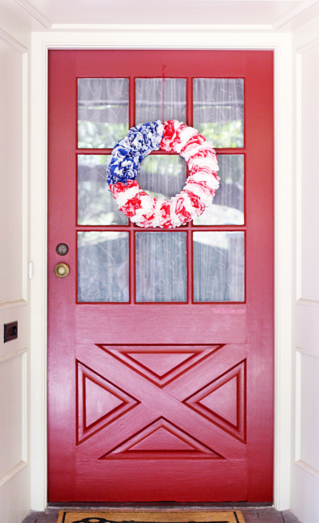 Seriously, how cute is my DIY Red, White and Blue Wreath for 4th of July?? You should totally make one to hang on your door before the holiday this weekend!
