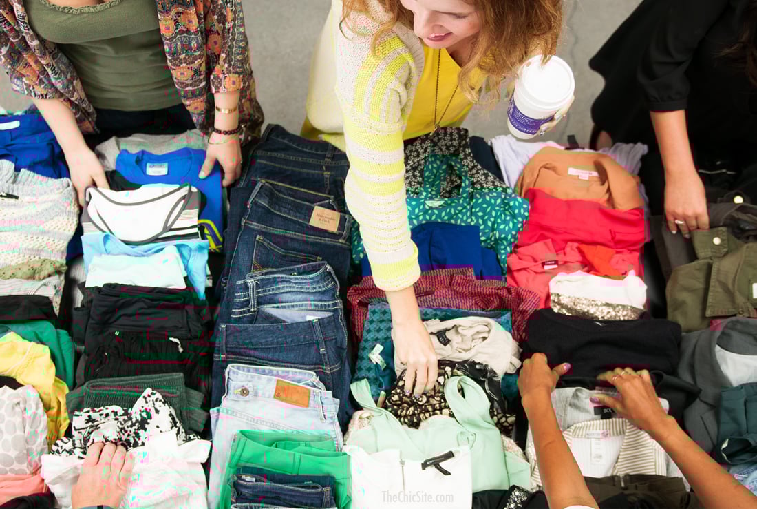 So, that gave me an idea. What if we hosted a Clothing Swap Party at work? What if we invited everyone to bring the clothes they don’t wear anymore and then we traded with each other? This means that we were all forced to clean out our closets (finally!) and we all got a bunch of new clothes (totally free!) and when we were done we loaded it all up and made a big donation to our local Goodwill. It was awesome! Check out details below to see how you can host your own clothing swap party.