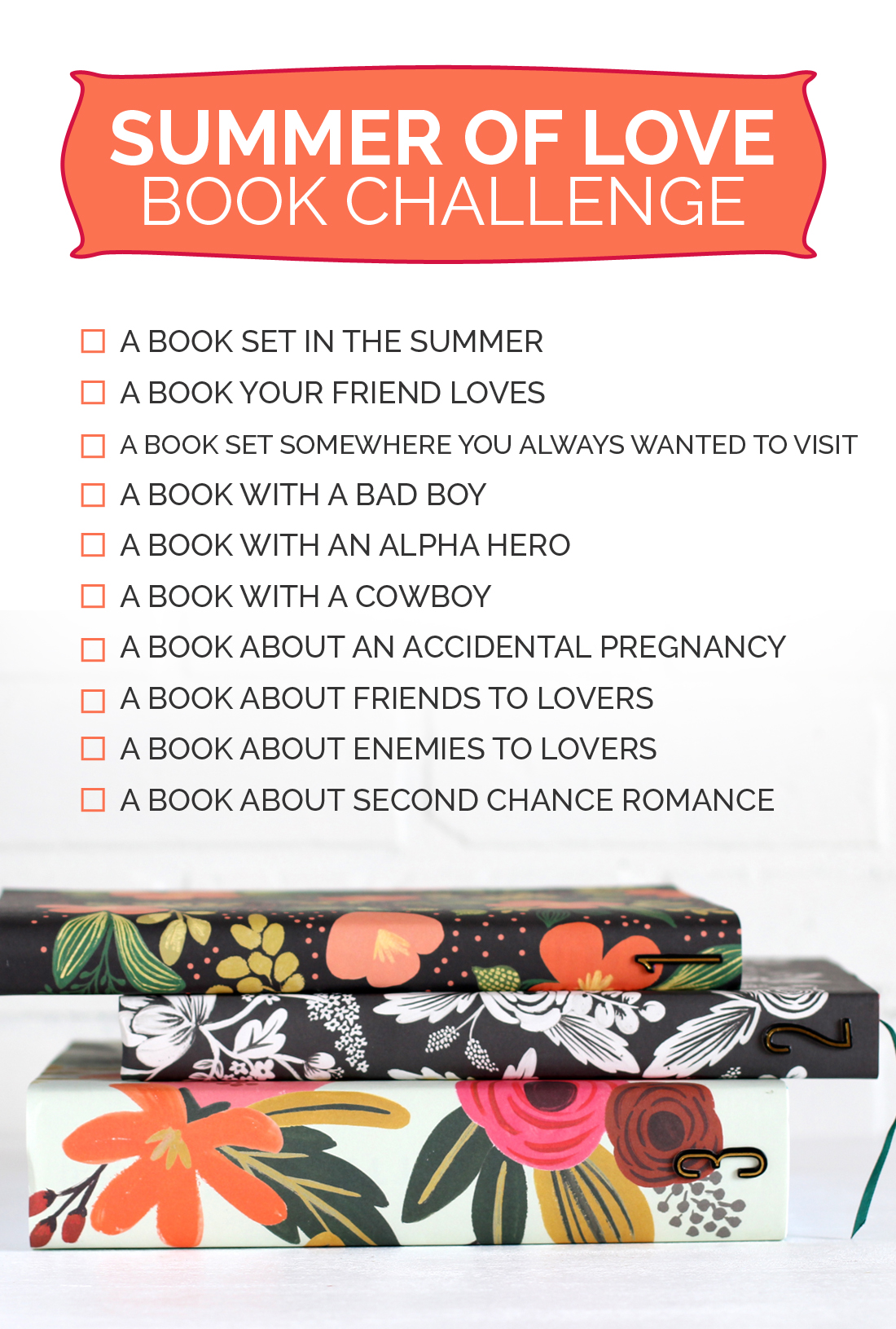 We’ll discuss the books we’re reading all week long on Facebook and every Friday we’ll chat about the new challenge for the following week. It’s going to be super fun… I mean, super fun if you’re a book nerd like I am, obviously.