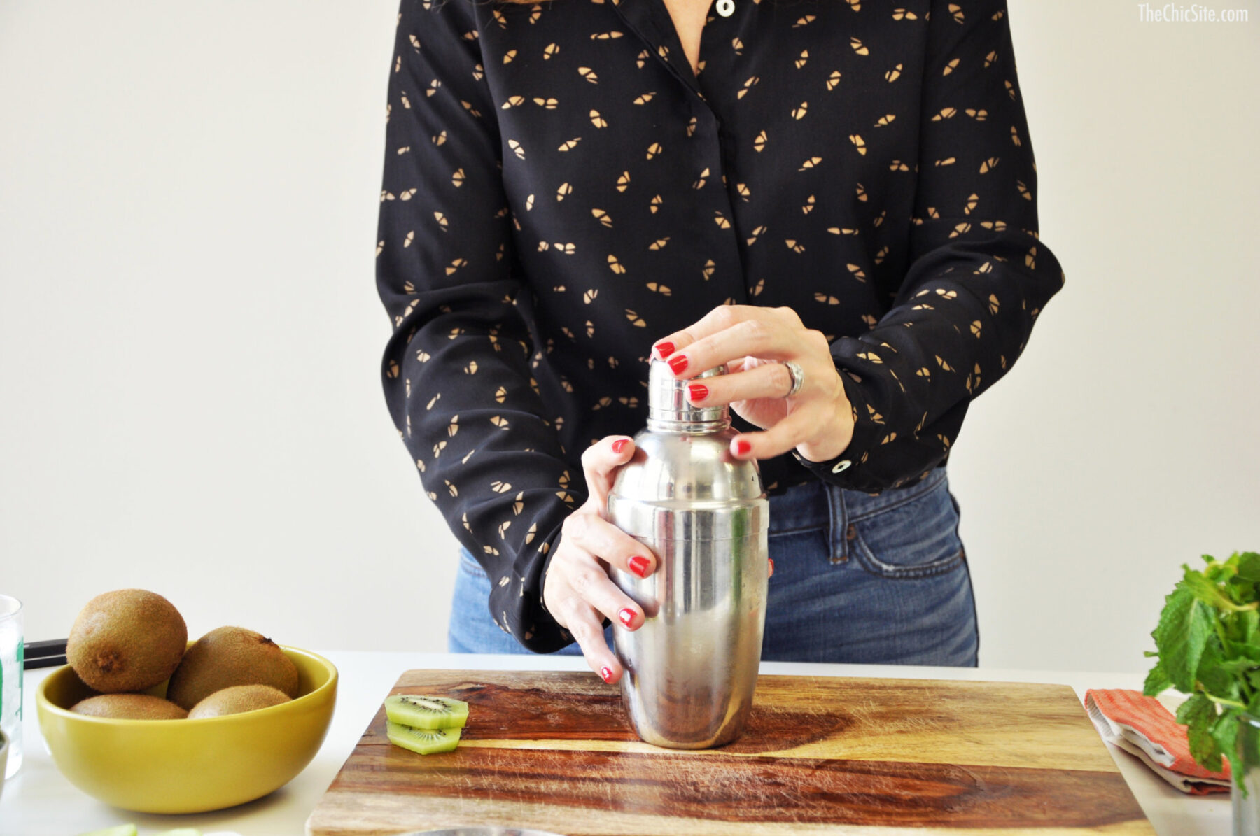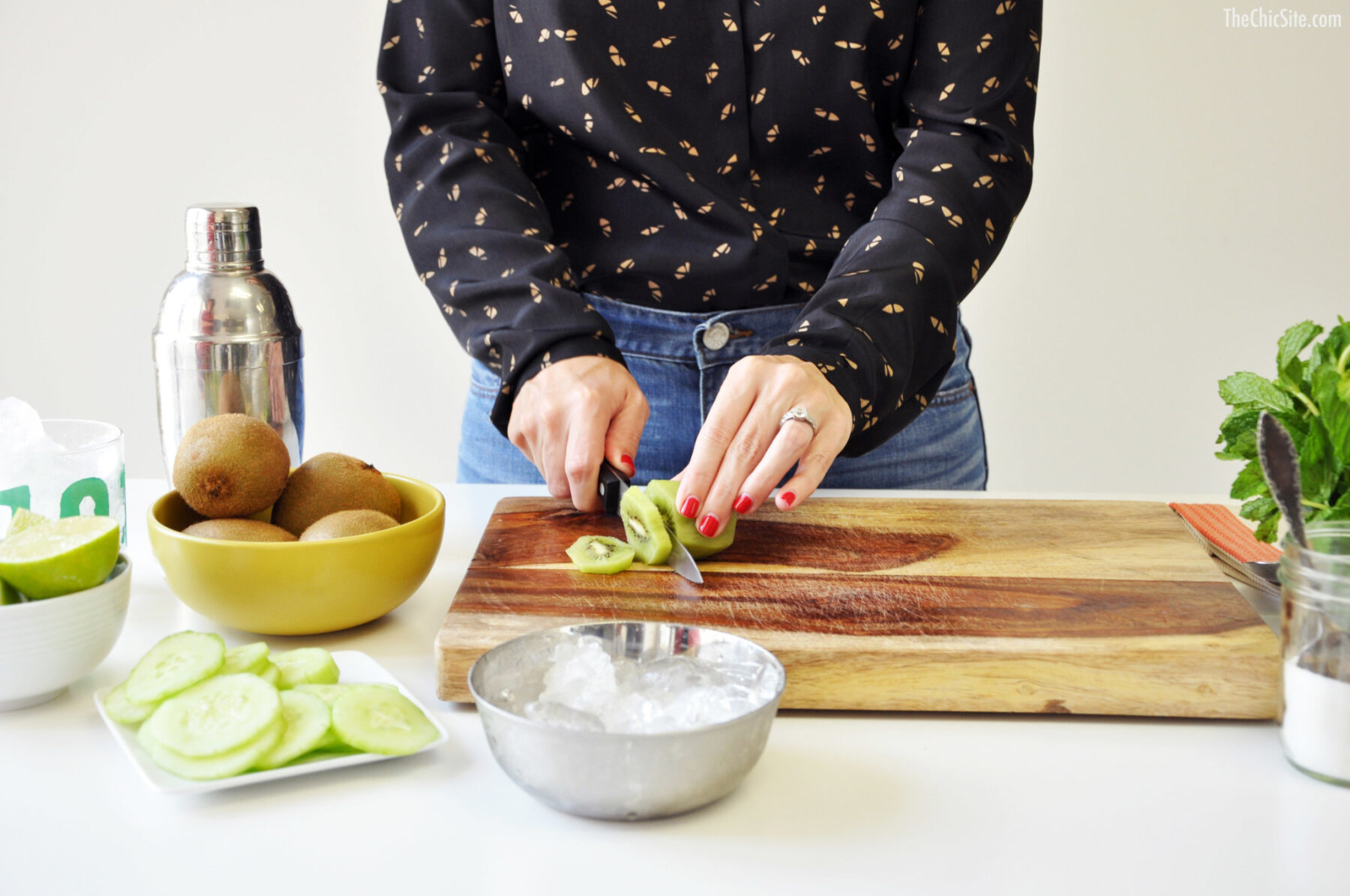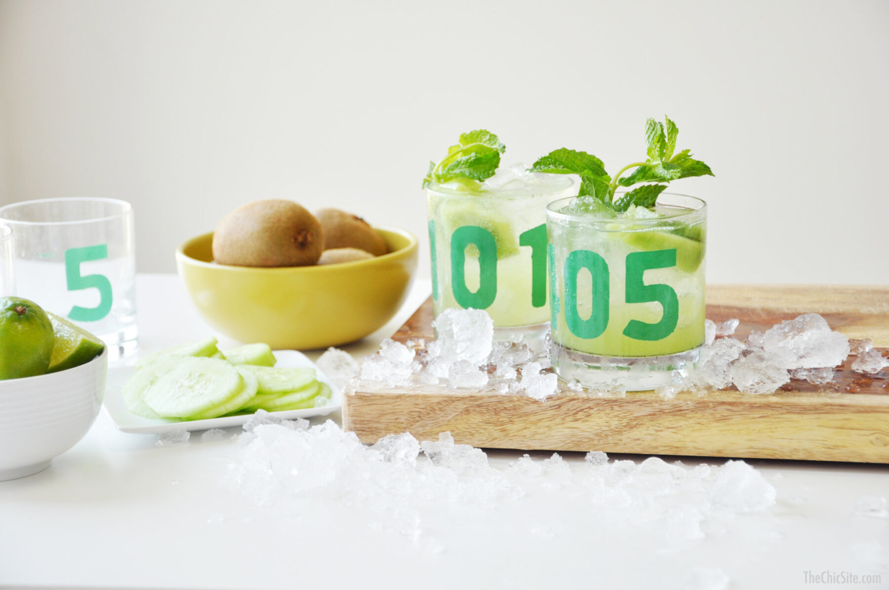 A mojito was one of the first cocktails I tried when I turned twenty-one. I imagine I’m not alone in my love for this drink since it’s sweet and refreshing and tastes like a vacation in a glass. During the summer there’s almost nothing I’d rather sip on, so I asked Jonathan if he’d come up with a new spin on it for me. And boy did he ever! Allow me to introduce our Cucumber Kiwi Mojito, the best thing to happen to fresh mint since the invention of toothpaste. Watch the video to see how I make them and then scroll down for the full recipe.