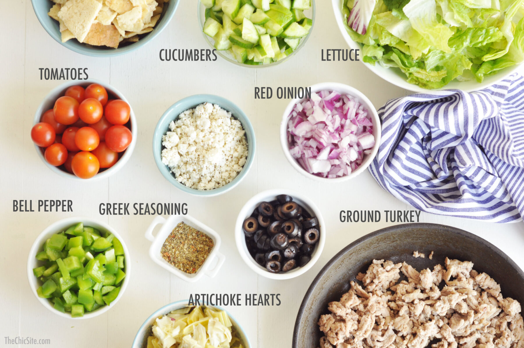 - In a large bowl, combine all of the ingredients (including the cooled turkey) and toss until evenly combined. Serve immediately and garnish with a bit more of the crushed pita chips right before serving.
