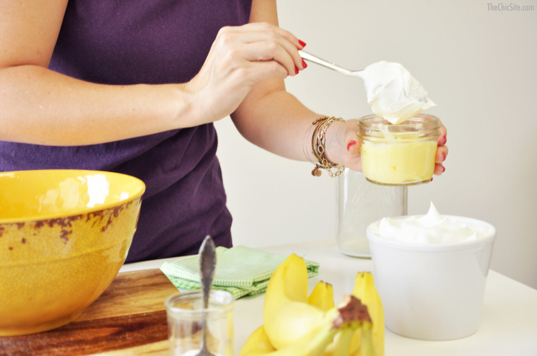 Dave and I went on a date night a few weeks ago and the restaurant had “Banana Cream Pie in a Jar” on the menu. I think I’ve made it perfectly clear how much I love any kind of banana pudding situation, so me not eating this thing wasn’t even an option. Not only did I devour it, but I took a picture and sent a text to Jonathan that said We have to make these on the site!!!!