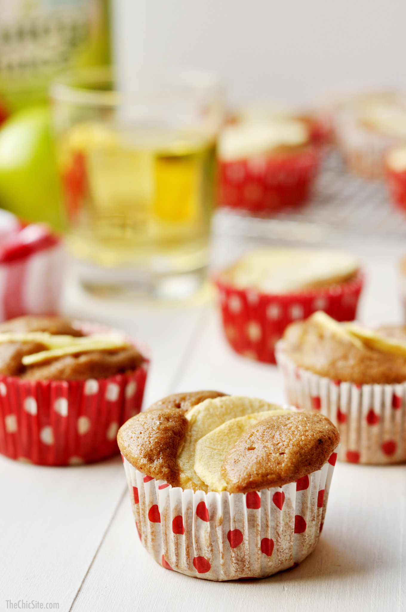 Chip Tip: For even muffins, use a medium-sized ice cream scoop to portion out the batter into each muffin cavity. Top each with a thinly sliced apple wedge.