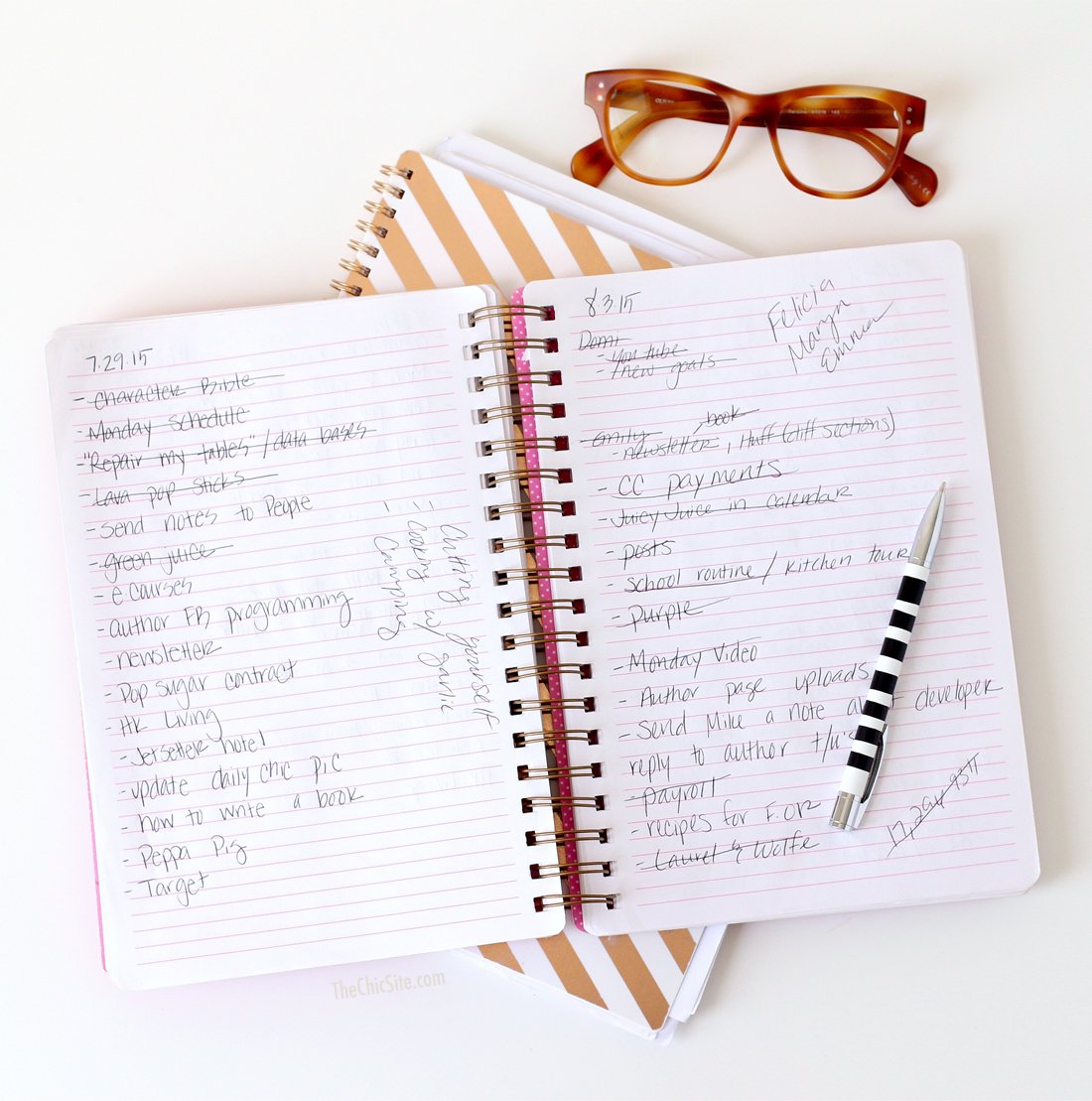 I’ve tried digital planners and fancy planners and date books galore, but my tried and true is actually just a large spiral bound notebook. Allow me to explain the awesomeness here. It’s inexpensive for one thing. Target creates a new fun spiral bound notebook about every seven hours, so there are always fun options. Secondly, it’s durable. I carry this thing with me everywhere (for serious, I get a little freaked out if I don’t have it) so it gets roughed up by life in my backpack but it still stays strong. The key is getting a spiral bound notebook with thick cardboard covers. Also, I use it for everything: grocery list, at home to-do’s, at work to-do’s– they’re all in there. I just use a fresh page for each new day. Every morning I open up my planner to the next page, date it and start my list. If it’s a Saturday it might have the things I need to clean or a note to pick up the dry cleaning. If it’s a Tuesday it’s focused on work items that I can quickly tick off. Anything that doesn’t get cleared just gets added to the first line of the next new page. I realize this is the simplest trick ever and I hope you guys aren’t disappointed it’s not fancier. Honestly though, sometimes the old school way of doing things is the easiest way of doing things.