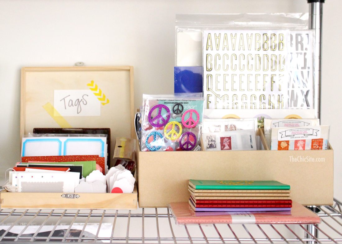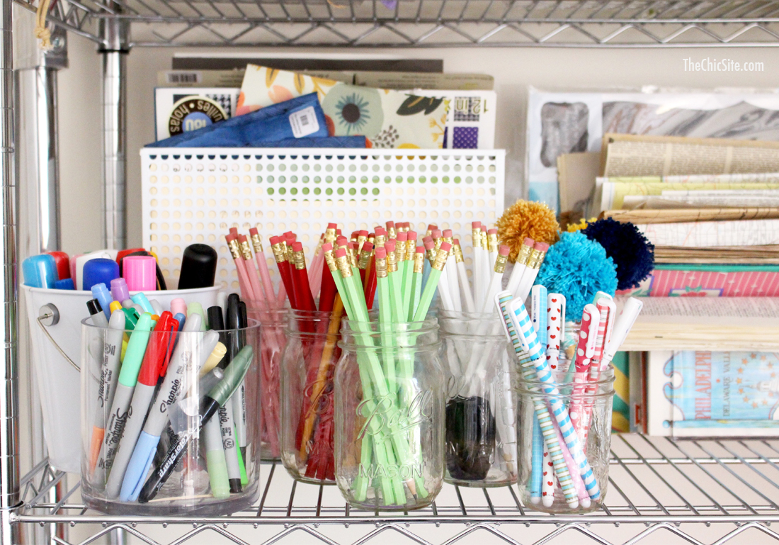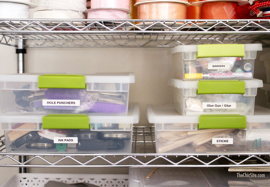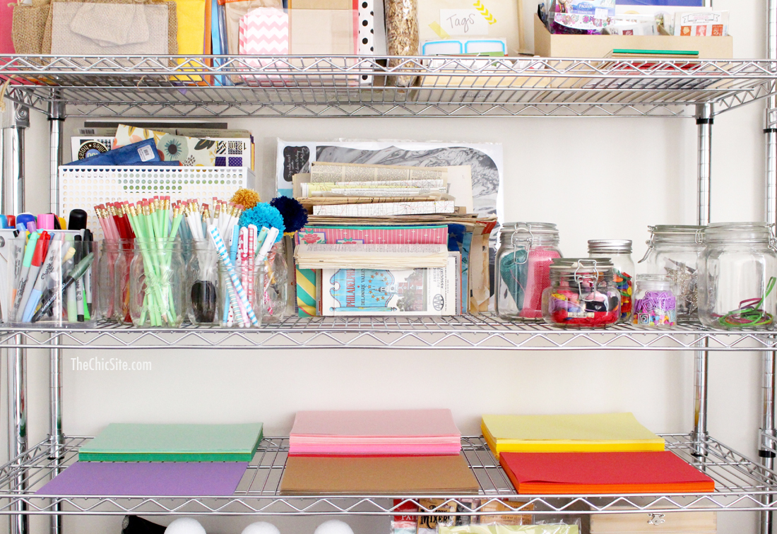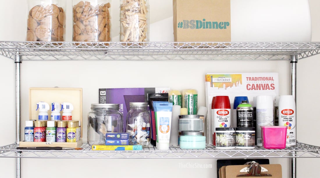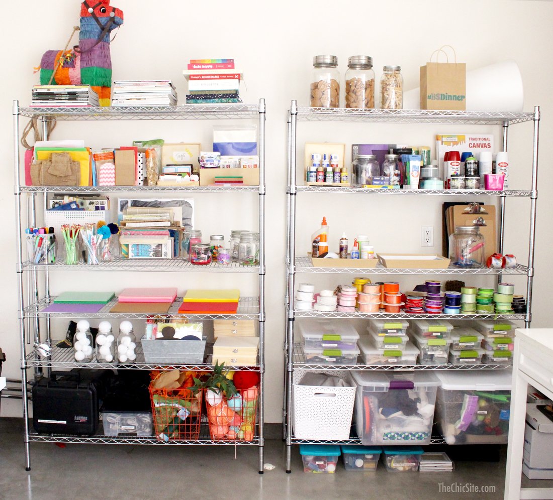 Step number one was getting these stackable shelves so we could see everything. When it comes to craft supplies you won’t use what you can’t see so it’s important to have somewhere to put it all.