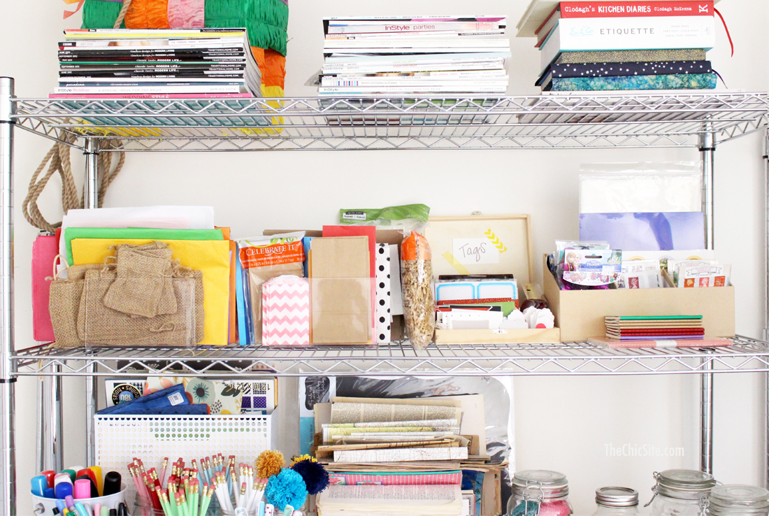 Every Monday I record a new episode of #RachTalk my weekly show where I talk about random things while drinking caffeine in the Chic HQ craft room. And many of you have asked for a tour of that room because, for reals, who has an entire room devoted to craft supplies? Well, if you run a lifestyle website then you totally do! The craft room also functions as an office for both our social media coordinator and our head of PR so it needed to be functional as well as pretty. Here’s how I set it up.