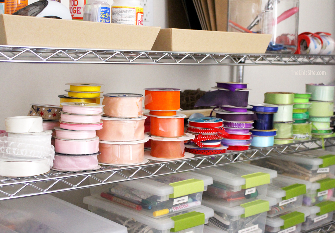 Both paper and ribbons were sorted and arranged by color. It makes it so much easier to find a coordinating piece in the craft room.