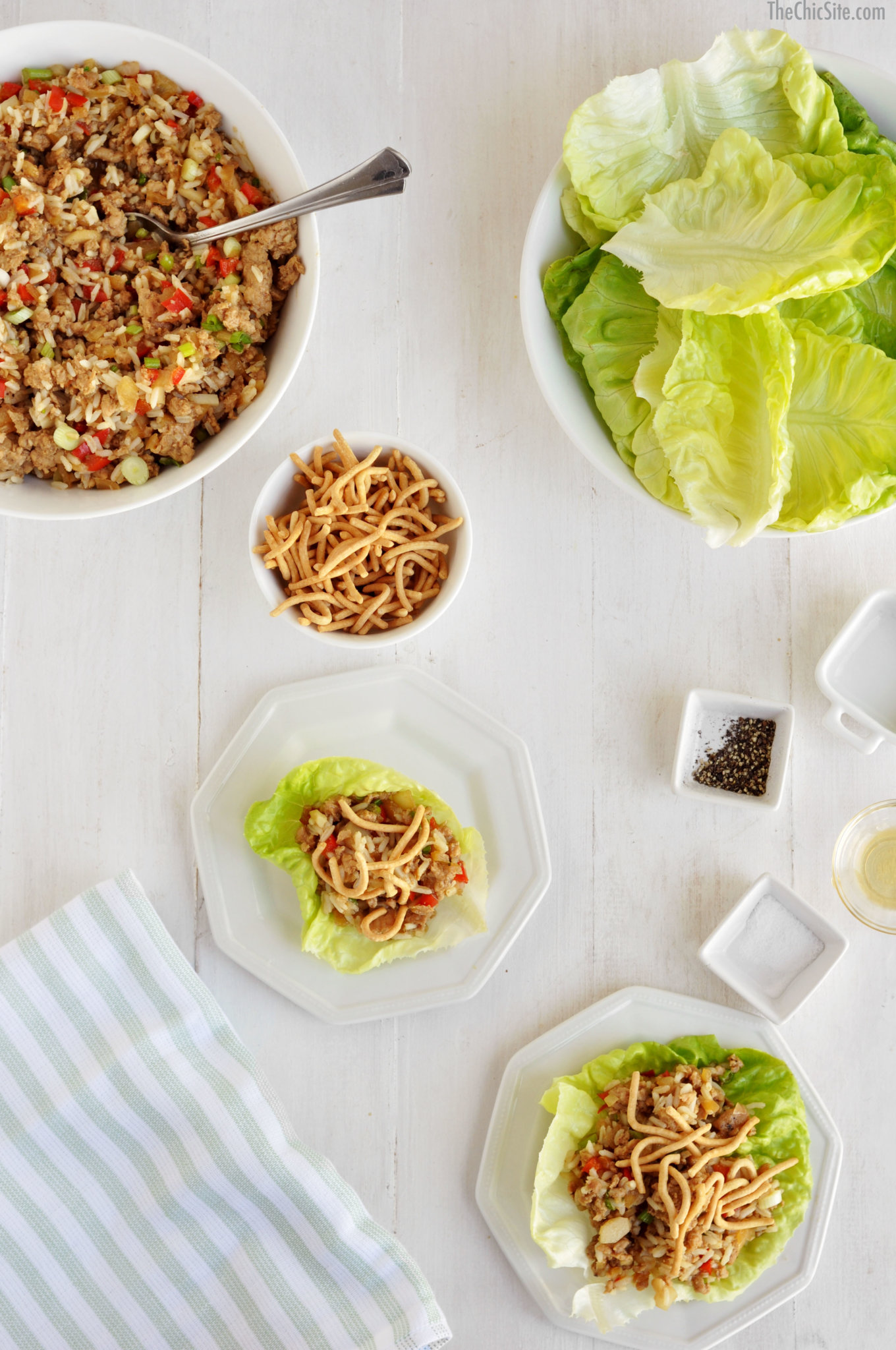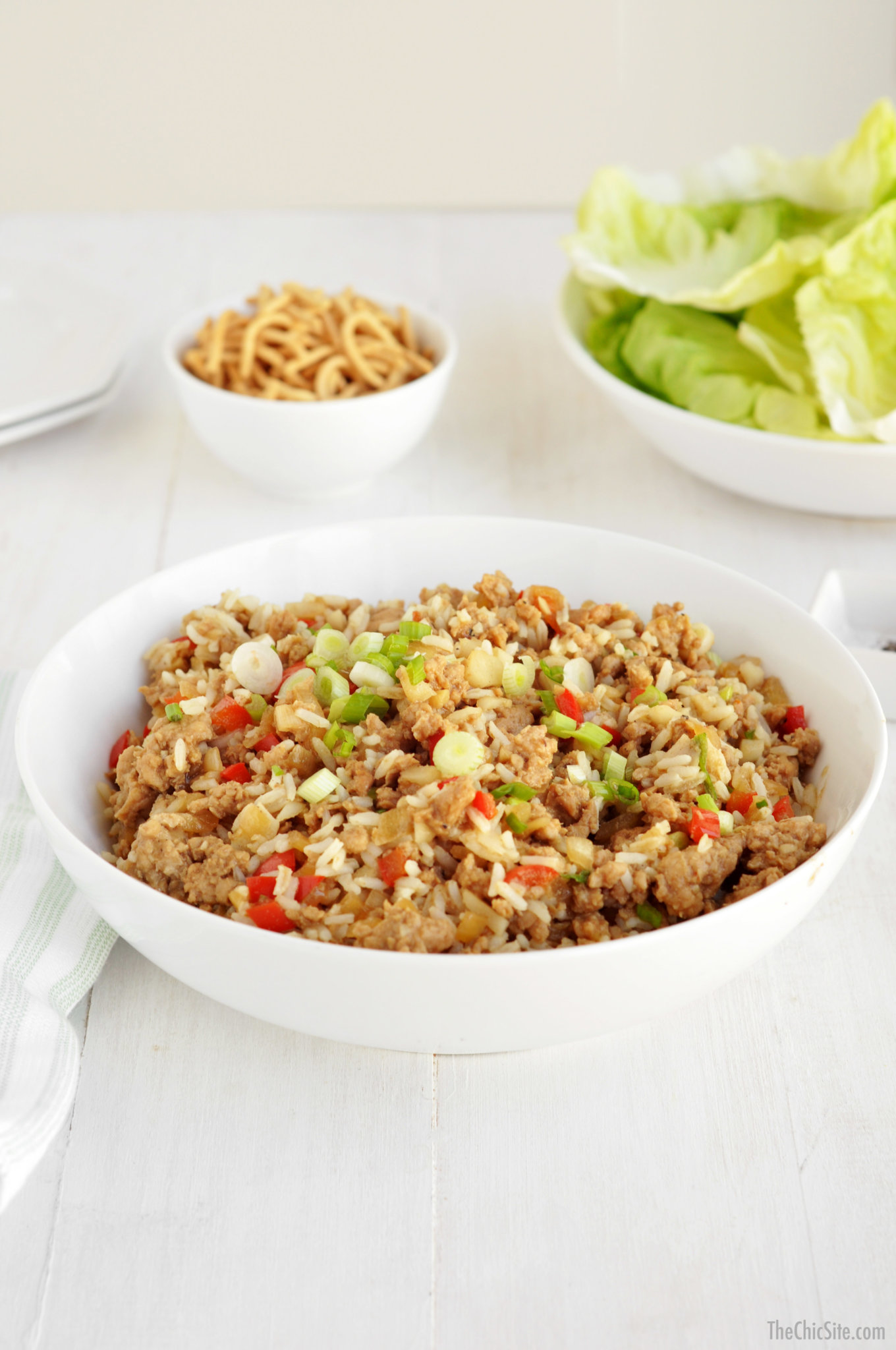 I like to serve the lettuce wraps with a few crunchy noodle bits (crunchy chow mein noodles that you can find at the asian foods aisle). I like that added texture to the wraps.