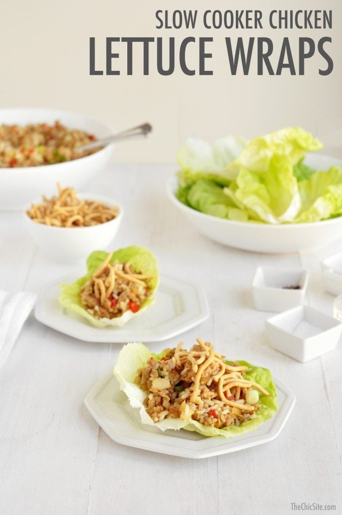 Y’all know how much I love a slow cooker recipe… but sometimes I want something a little lighter. So how about some Slow Cooker Chicken Lettuce Wraps? These are the perfect snack for watching the big game or the ideal weeknight dinner if you’ve got a busy calendar. I can’t wait to hear if you guys love them as much as we did at Chic HQ!