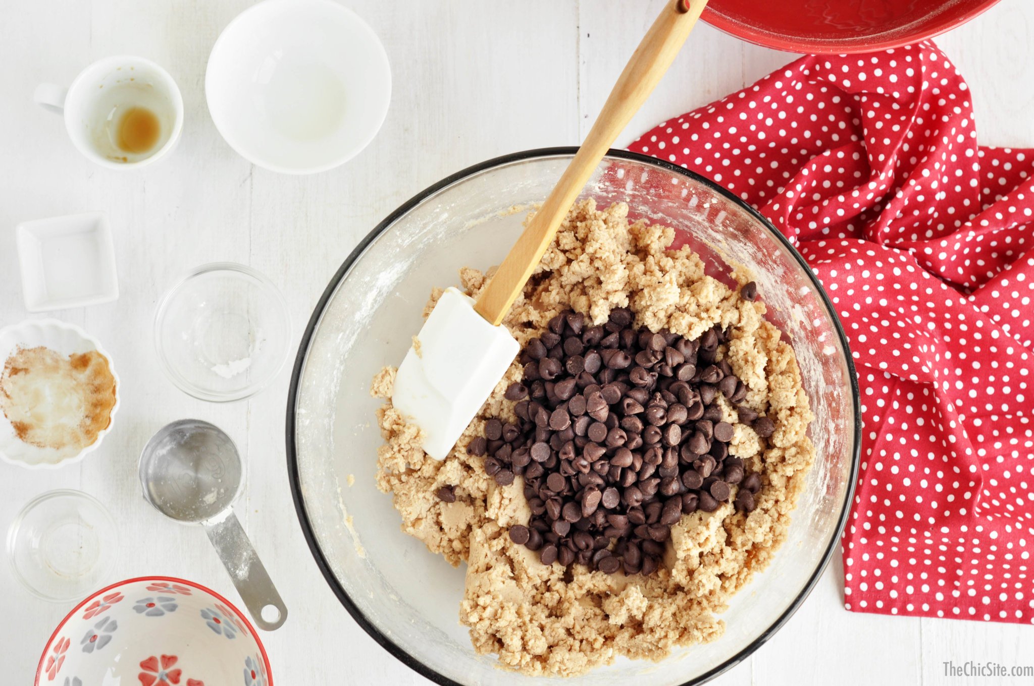 Stir in the dry ingredients until well combined and then add in the chocolate chips.