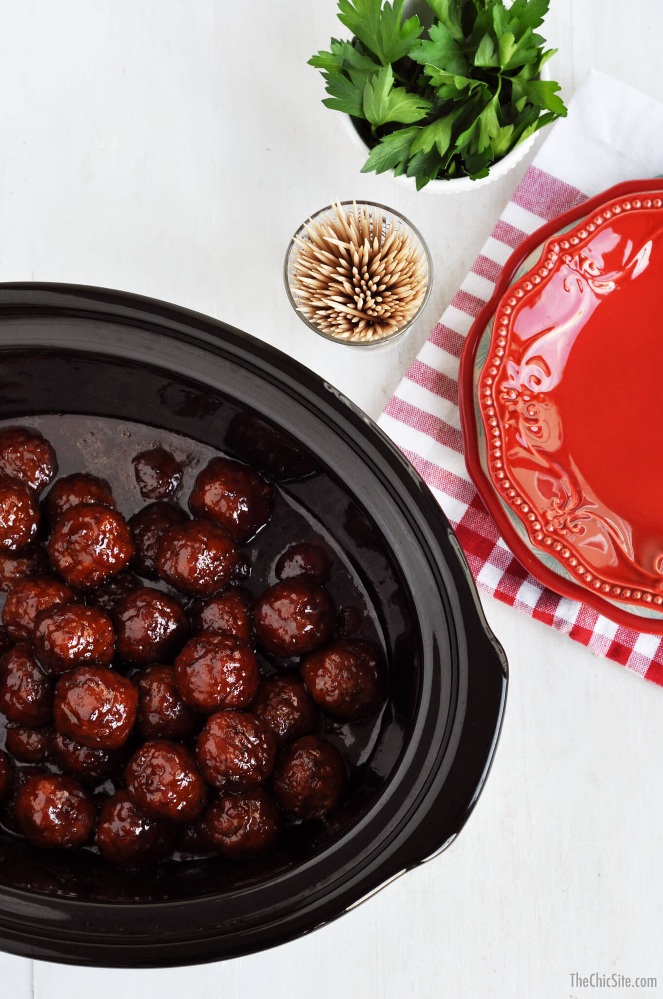 Make sure to toss the meatballs every so often to ensure that don’t burn. Serve the meatballs hot right out of the slow cooker with toothpicks or place them on a nice platter!