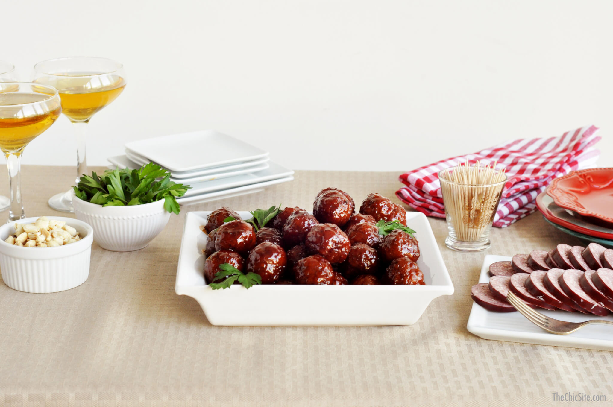 At first glance this recipe is crazy town. But if you think about it, the jelly is going to reduce to create a sweet glaze and the cocktail sauce is going to give it a kick of heat. Your guests are going to love this one!