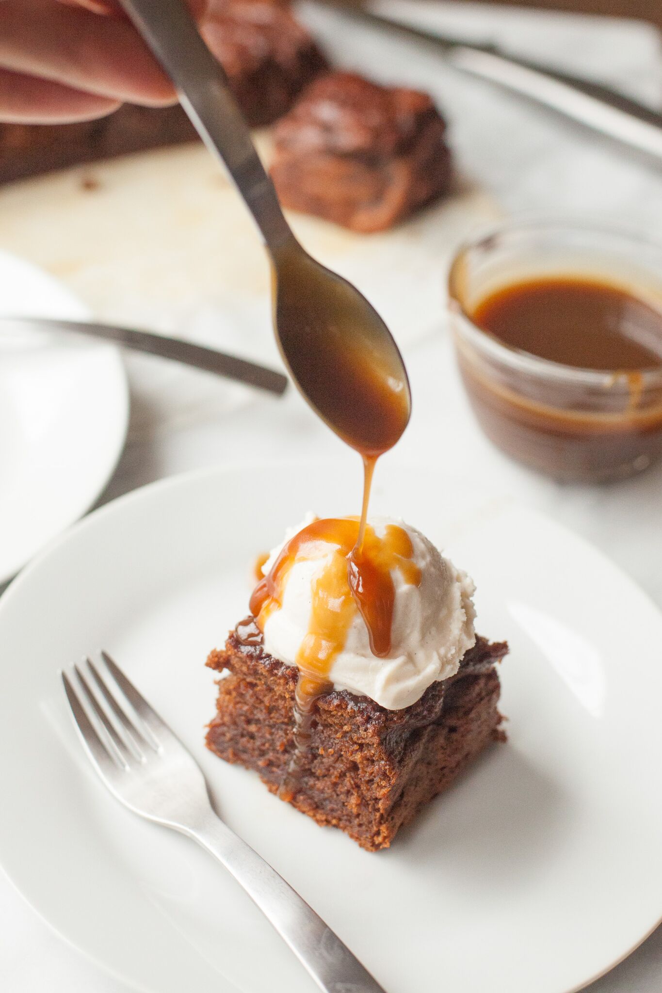 Top with a dollop of vanilla ice cream (you know you want to). And then drizzle with the toffee sauce.