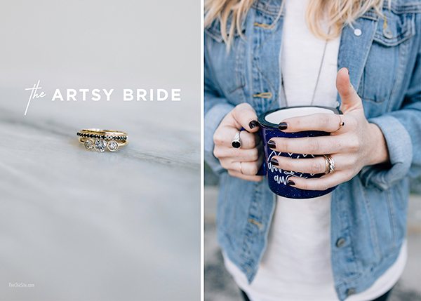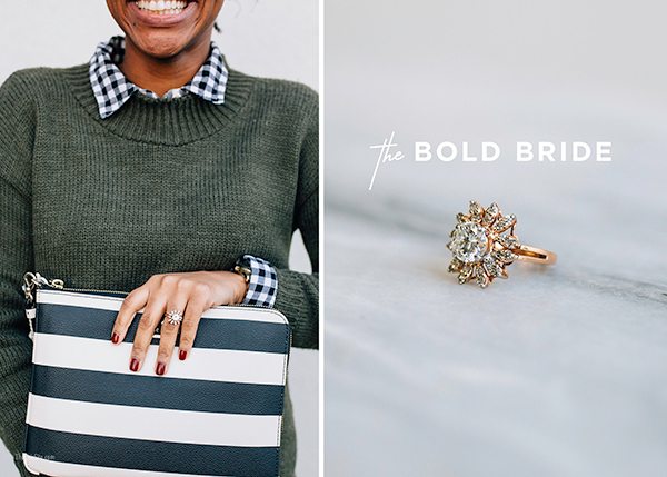 As a photographer and designer, Sami’s engagement ring matches her stylish personality. She rocks a cluster of three diamonds with a gold band. To make her ring even more unique, she paired it with three breathtaking stackable rings to give it a boho feel. Relaxed, free-spirited, and fun yet, still pretty and personal.