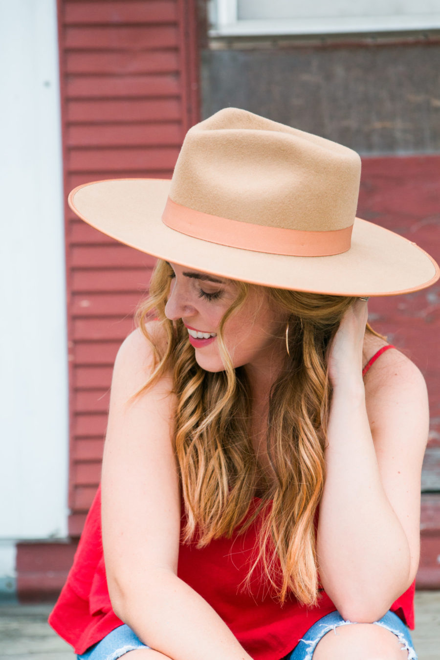 - Simply, curl the front pieces of your hair (but keep the ends straight) and style them so they still look cute and framing your face and then add your favorite large brim hat and you’re good to go!