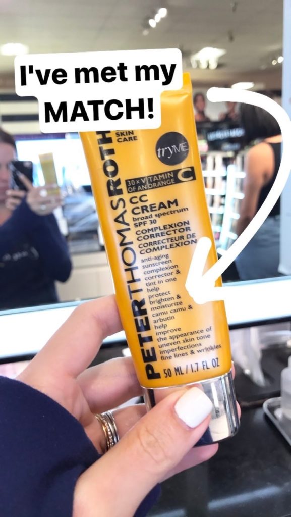 My match was Peter Thomas Roth’s CC Cream in Light/Medium. This product has Vitamin C and SPF which is perfect for summer and best part that it really feels like I am wearing nothing but it covers up by Rosacea which perfect! I seriously felt like J.Lo with all her glow. I also bought this product and seriously have been loving it.