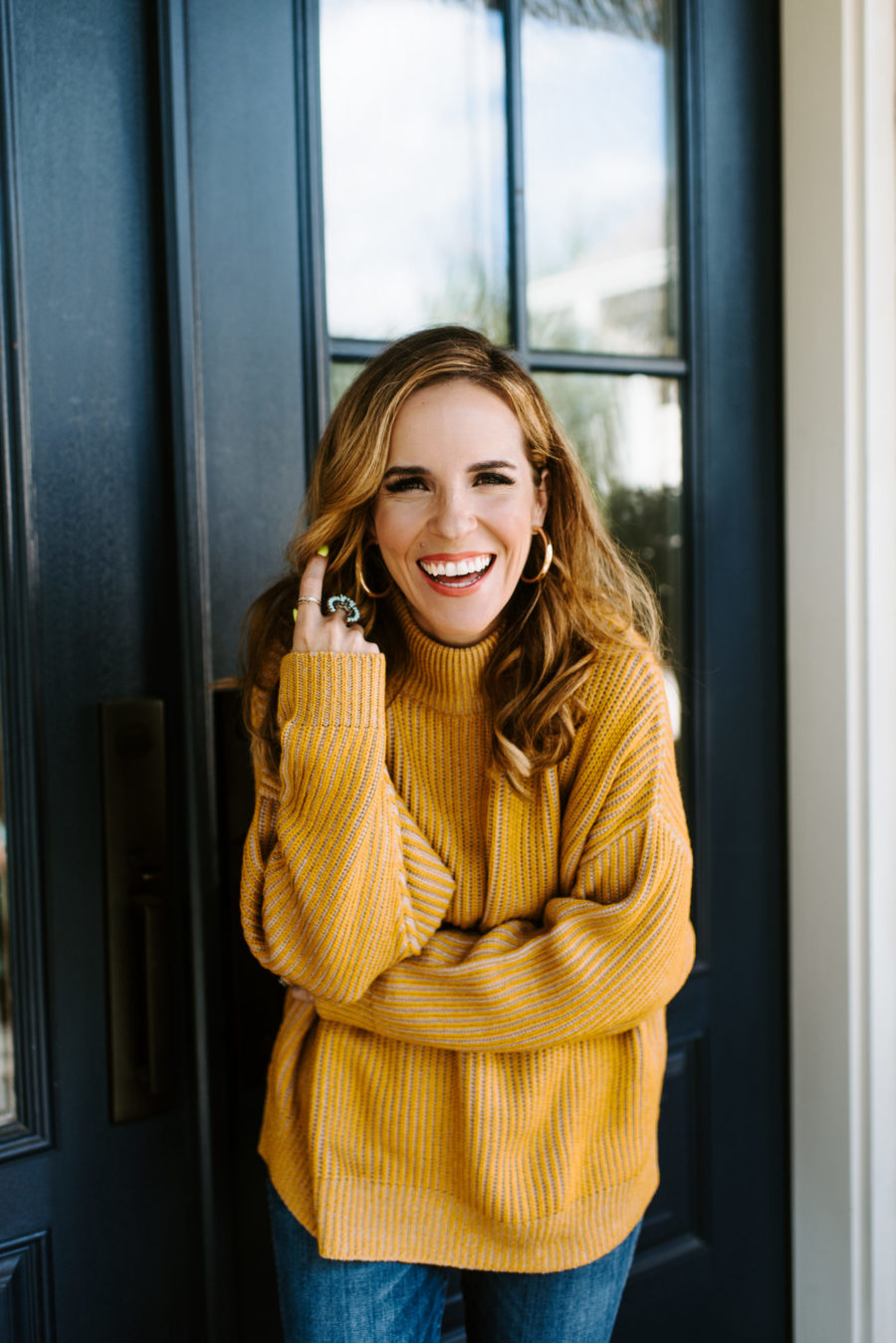 You know I love mustard tops, so here’s one of my favorite mock neck sweaters! I feel like the popular girl from the 70s with the slouchy look and some statement gold hoop earrings.