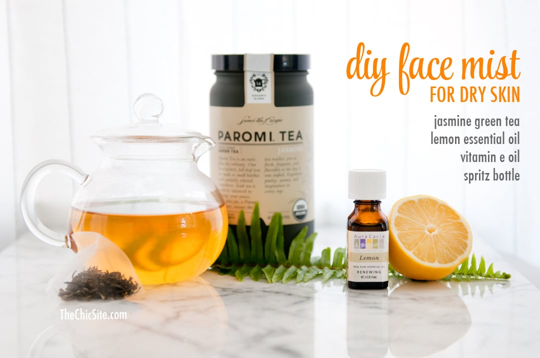 Fill half of a small spray bottle with jasmine green tea and let it cool