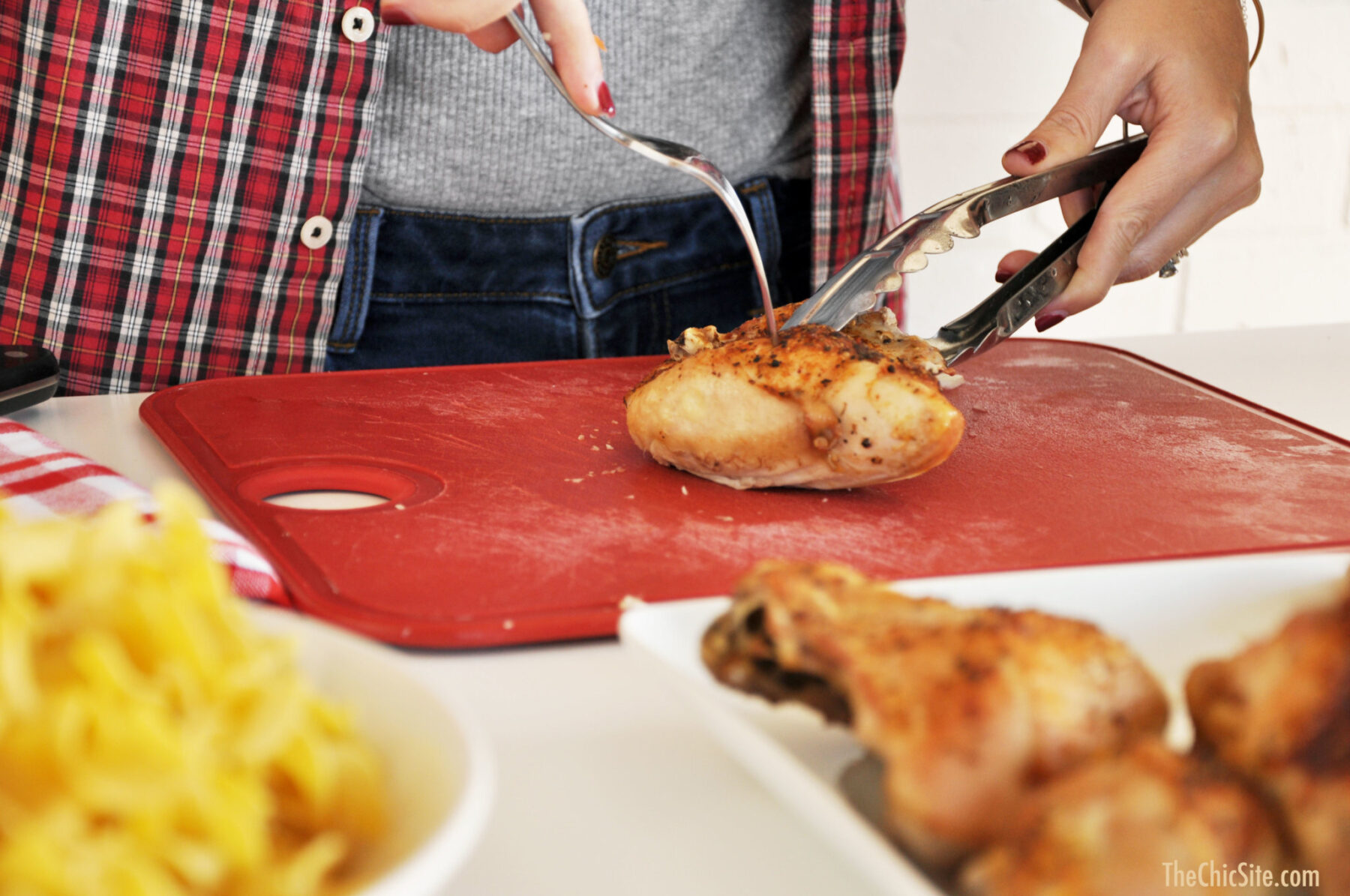 I use a pre-cooked rotisserie chicken from the store and then my only real job is to chop up the veggies.