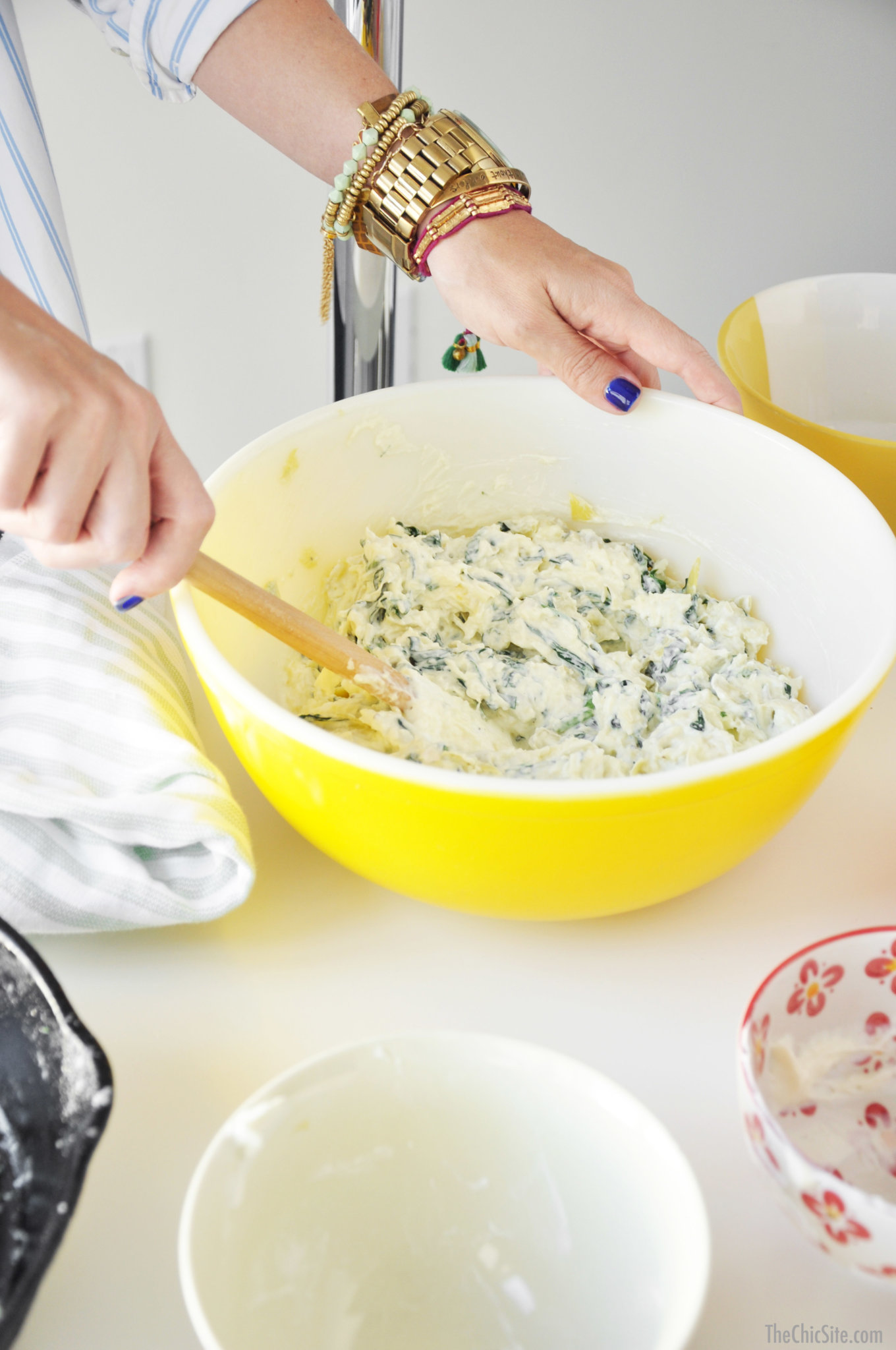 I mean, how have we never thought of this before you guys? We are the self-appointed champions of dip creation and this seems like such an obvious upgrade. I’m kind of mad at myself for not thinking of it sooner! We used an incredible recipe for Spinach Artichoke Dip but this would also be delicious with our Buffalo Chicken Dip, our Broccoli Cheddar Dip or our Pizza Dip… heck you guys, this would be awesome with any hot dip!