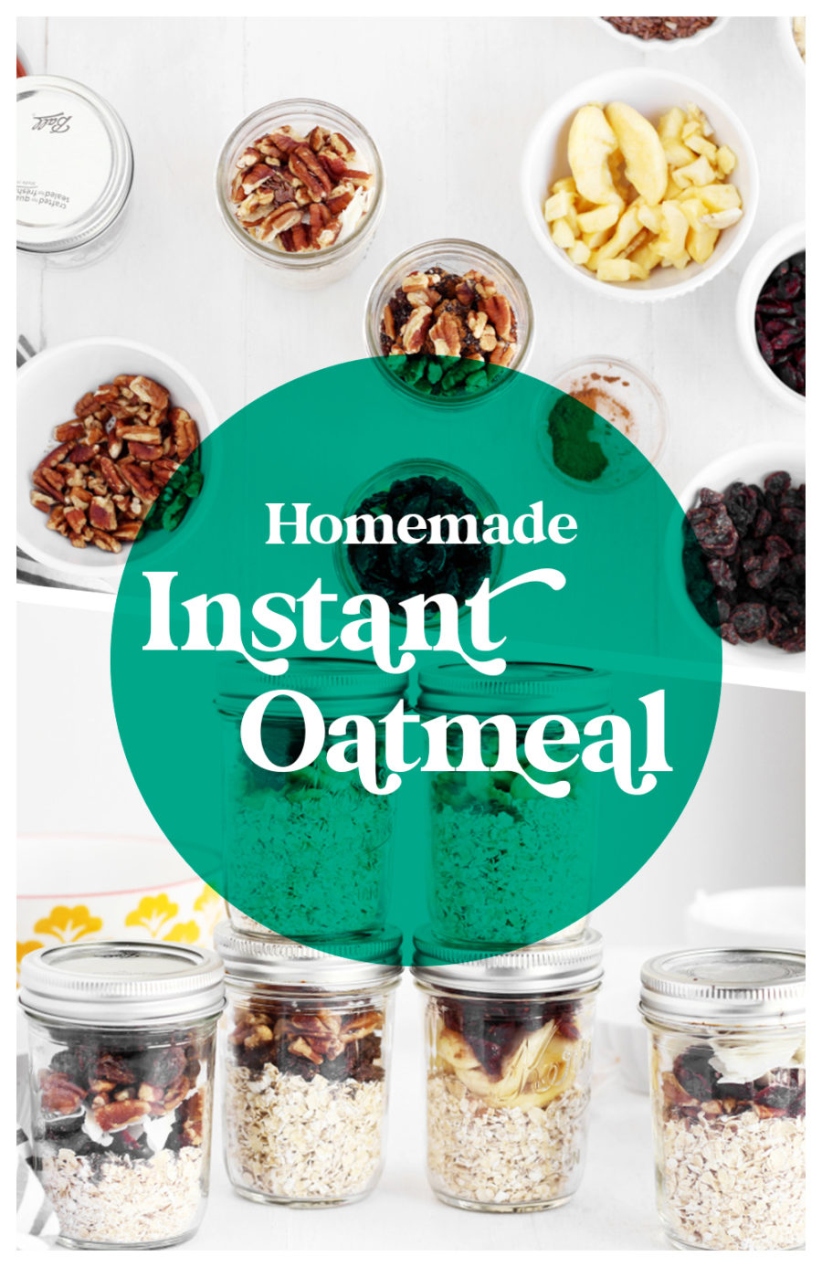 - Fill six small jars or containers (with lids) with 1/2 cup instant oatmeal.