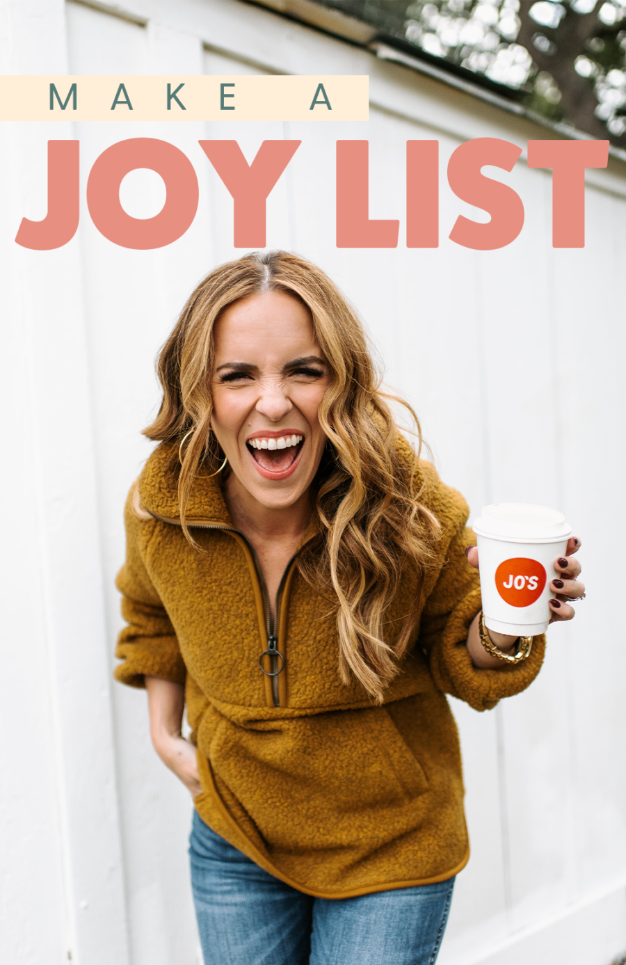 SO, I’m going to challenge you to make your joy list of 10 things that make you happy even if they don’t make sense to other people! And not things that only sorta make you happy like “take your bra off at the end of a long day” happy, but TRUE JOY.