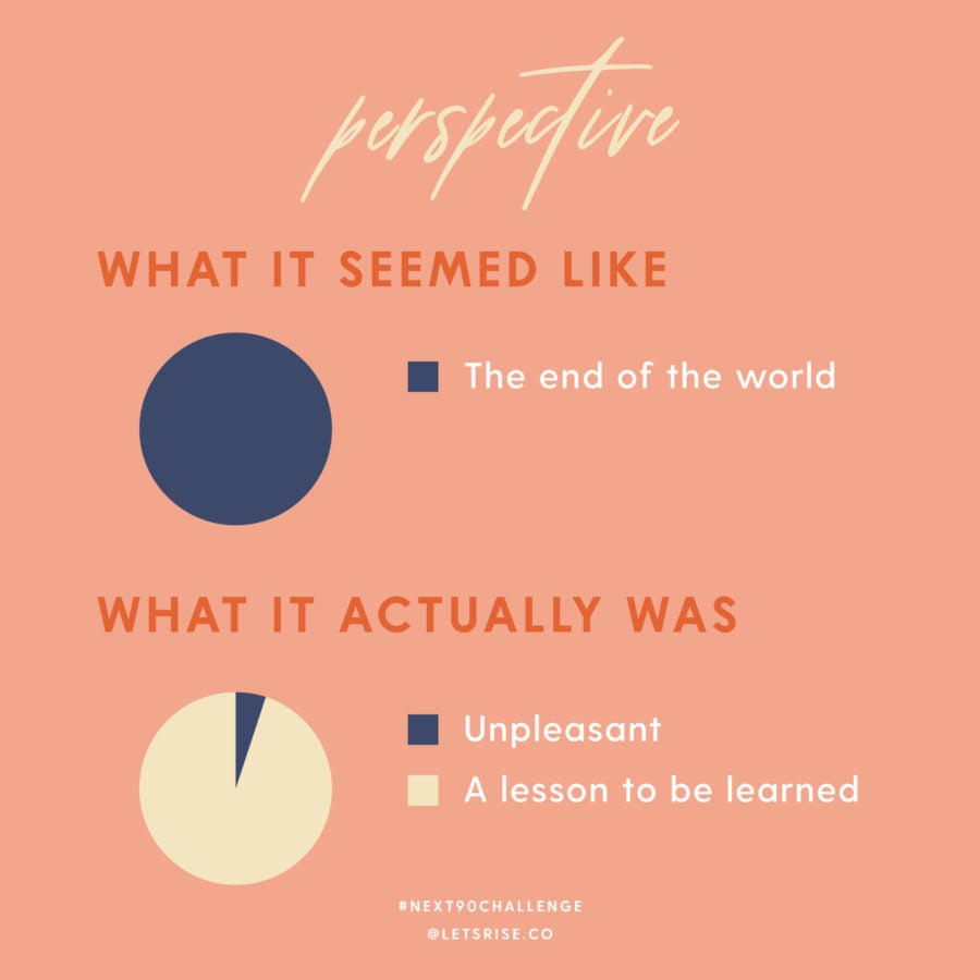 We just finished week one of our #NEXT90CHALLENGE and I started off talking about Perspective. This week we focused on perspective because in order to navigate the next 90 days of your life –or really, any hard season– you must have the right mindset. The video above is a little snippet from this week’s class and the content is totally free so be sure and sign up to get resources for living your next three months with intention and focus. You can sign up HERE.
