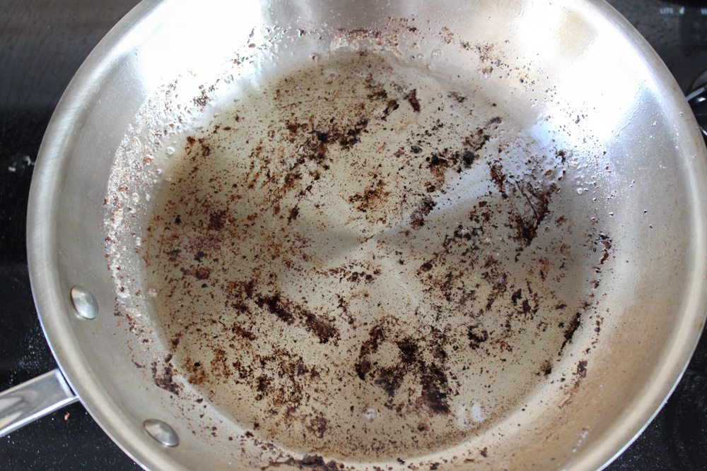 - In a large skillet, cook bacon over medium heat until crisp. Transfer cooked bacon to paper towel-lined plate and set aside. Keep 3 Tbsp of bacon fat and discard rest. You’ll want to keep all that burnt little bits in the pan. They will provide the onions with a lot of flavor.