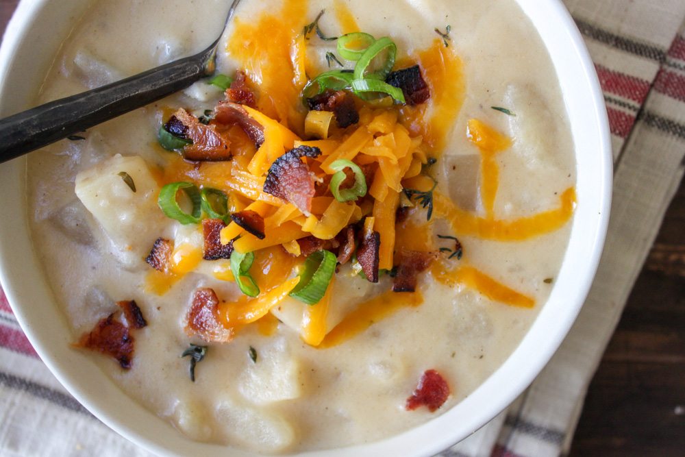 I am so happy soup season is upon us. There is nothing quite as comforting on chilly nights as a giant bowl of loaded baked potato soup.