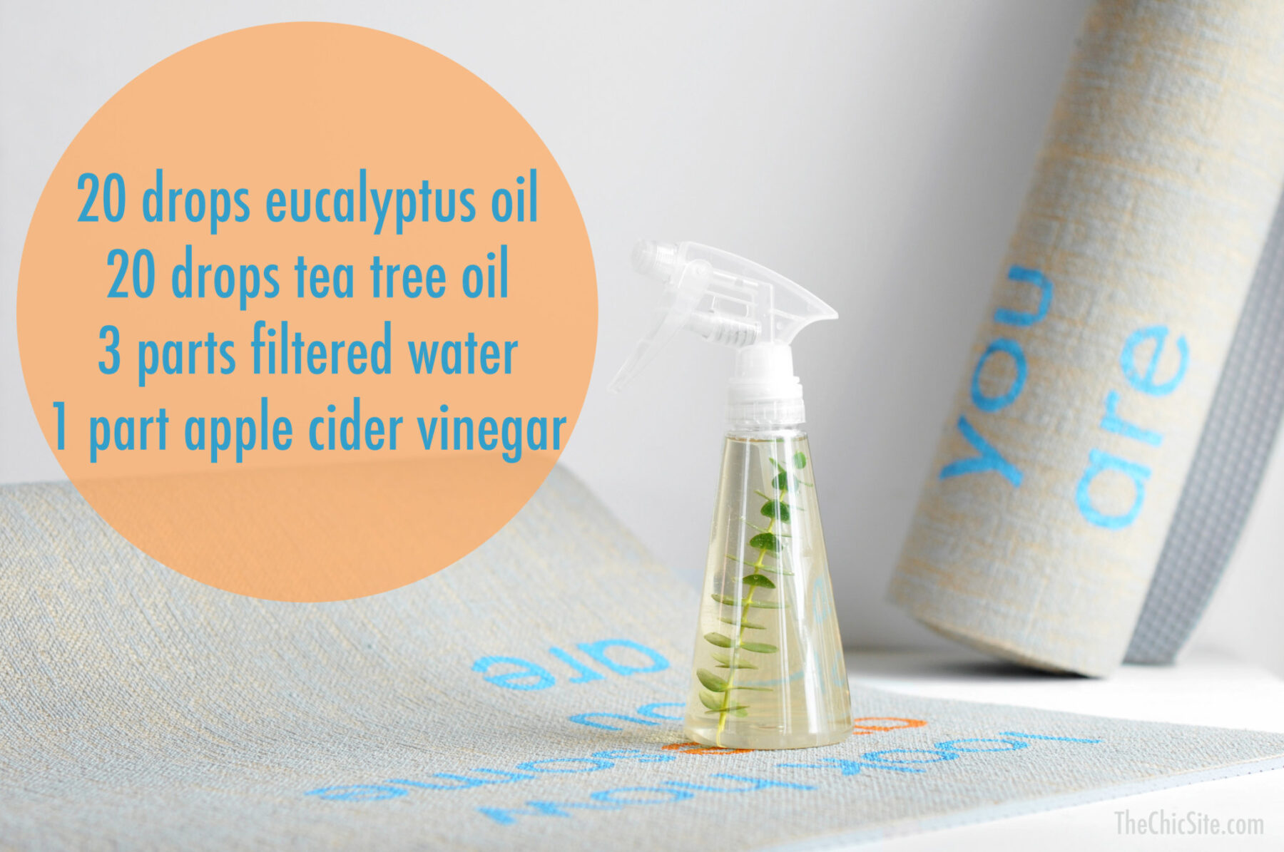 One of my favorite exercises has always been yoga, but being the clean freak that I am when it comes to products, I have always been hesitant to use harsh cleansers on my mat. I made this all natural solution with only four ingredients and the results were amazing. The combination proves to be an effective antibacterial solution to really get a deep clean, but it also helps preserve the life of the mat. The biggest benefit is the wonderful smell that lasts, an added aromatherapy bonus to enjoy during my workout. ~Brandee
