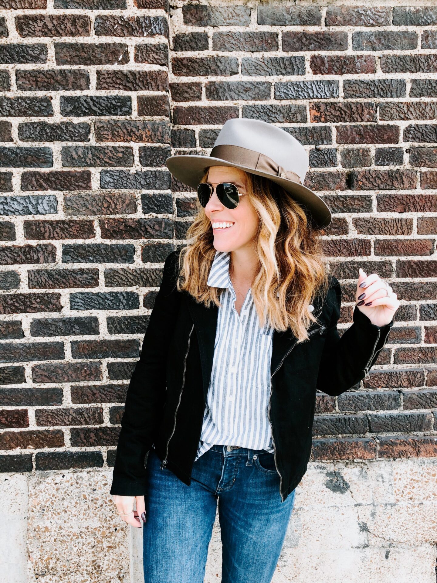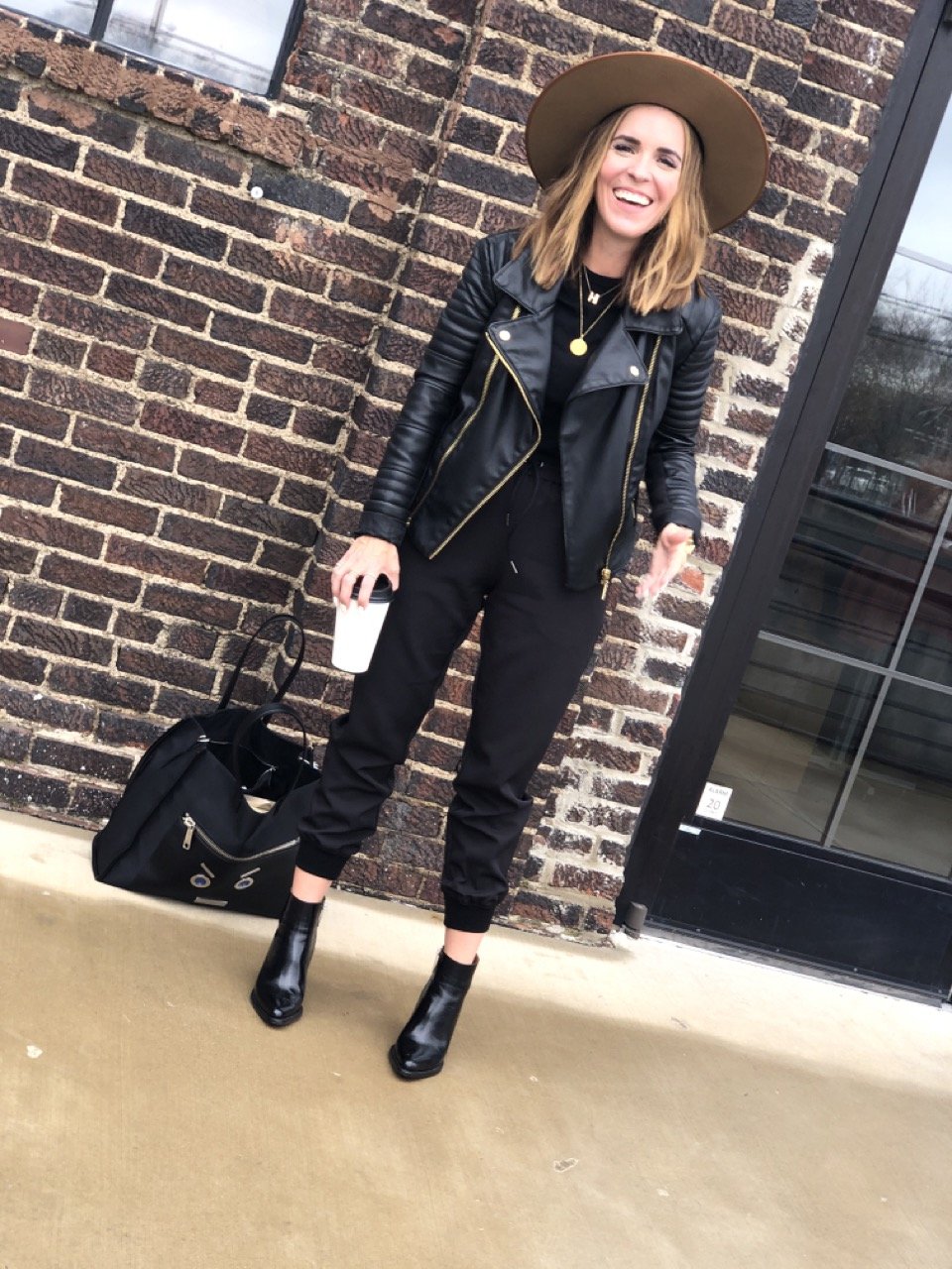 5 // Leather Jacket with a wide brim hat — Admittedly, I think this look works better when my hair is shorter but when it is, I rock it all the time.