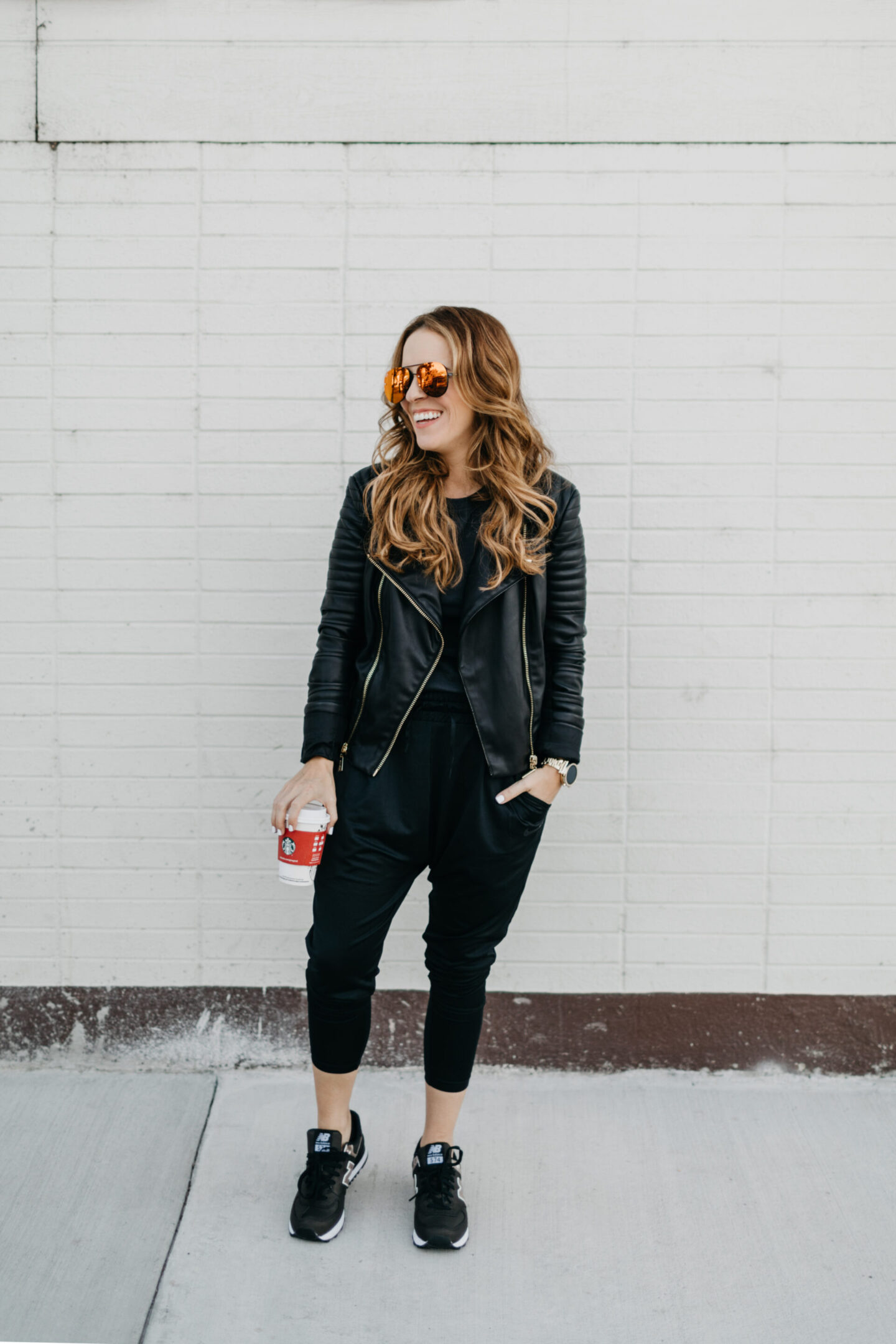 5 // Leather Jacket with workout clothes? Heck yeah girl, jazz up your loungewear — running errands never looked so good.