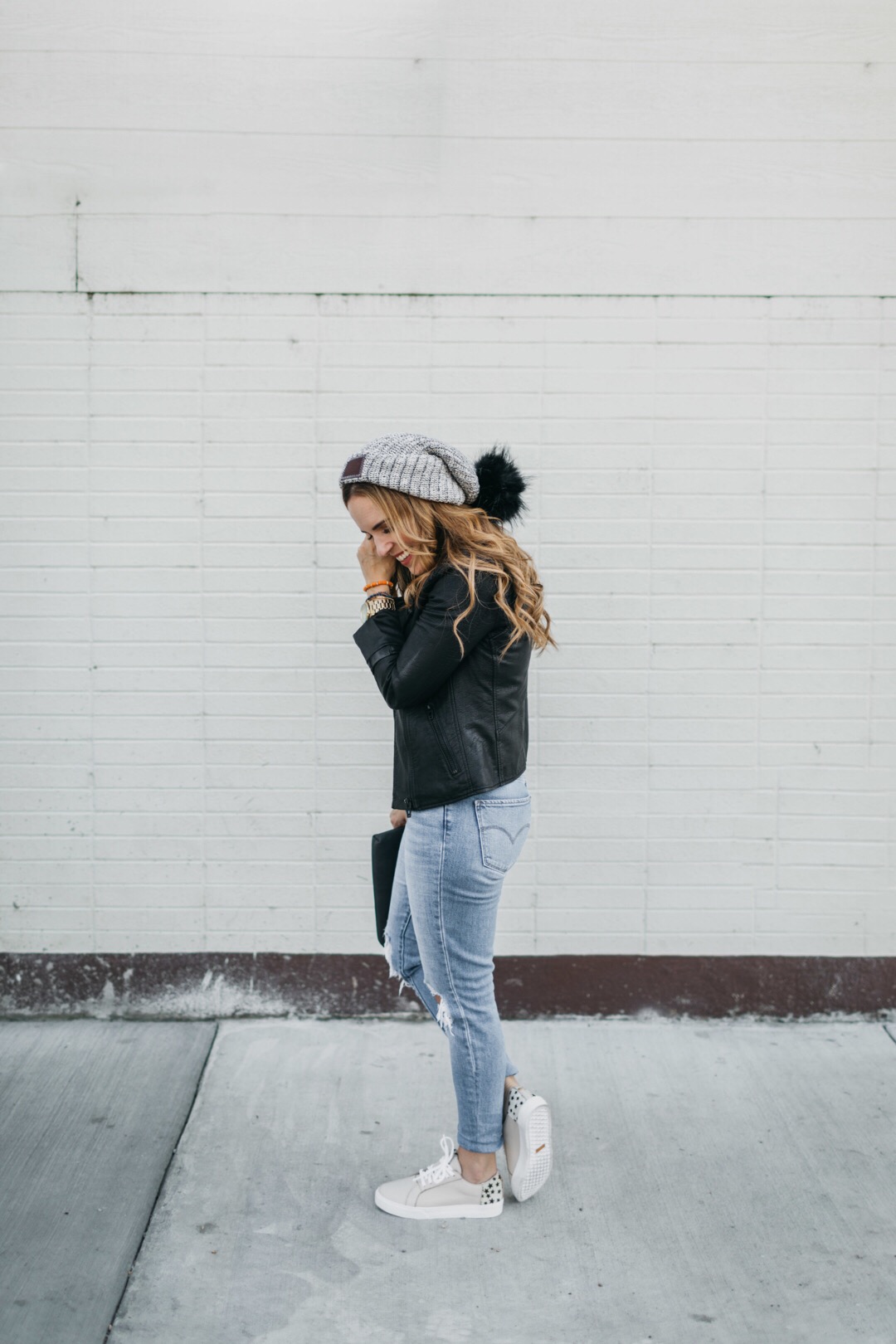I style a leather jacket with denim, cute sneakers and a graphic t-shirt all the time. It’s probably the outfit I’ve worn more than any other in life– perfect for cool spring days and early fall. When it gets a little cooler I’ll pop on a beanie and/or a great scarf with some boots.