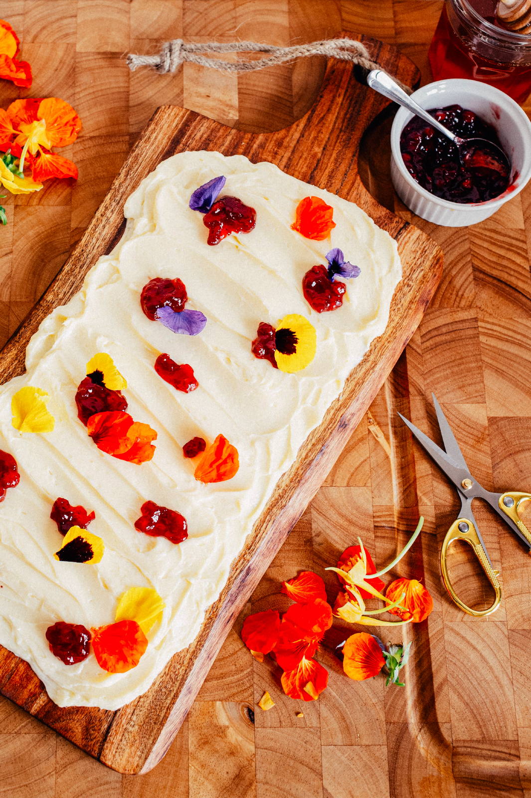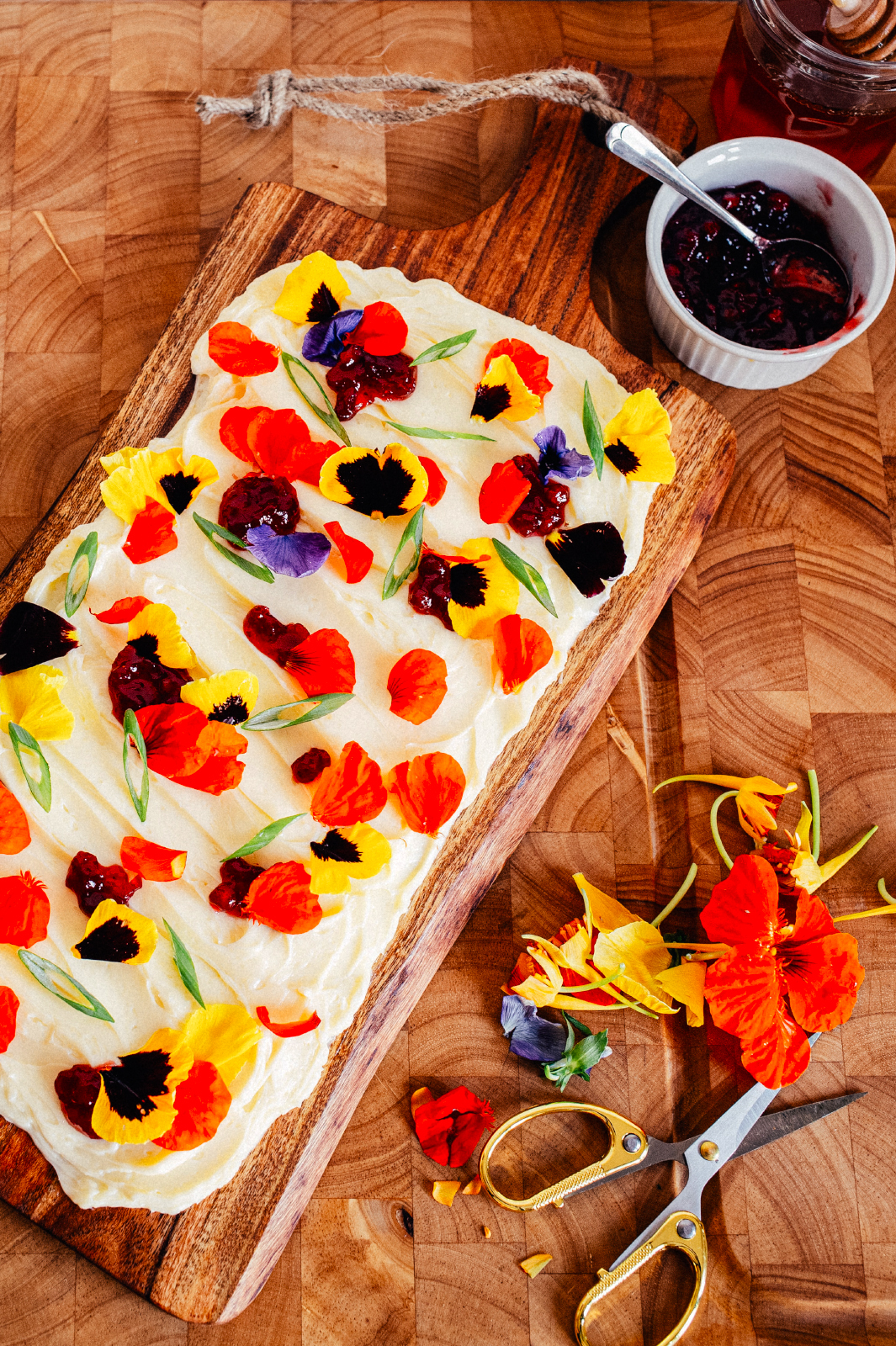 - Edible flower petals — marigold, viola, or nasturtium (optional)